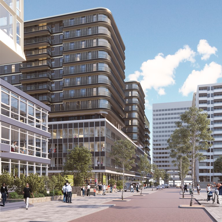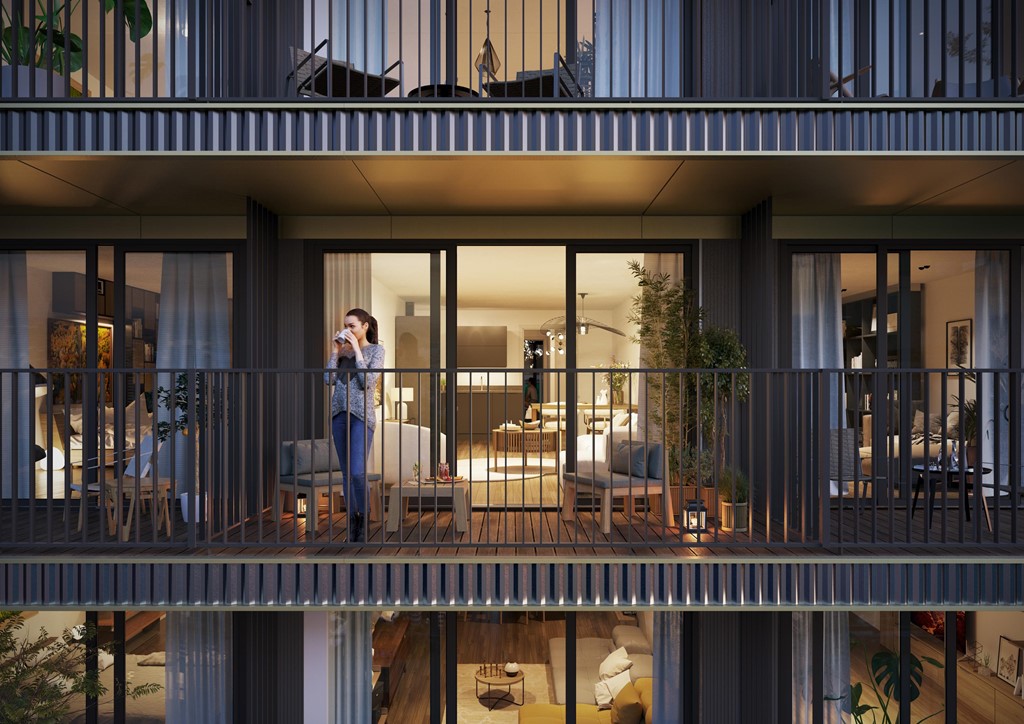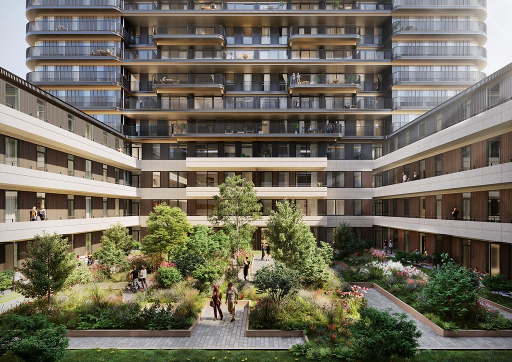 NIEUW IN DE VERHUUR - Berghaus Amsterdam - In februari 2025 wordt een bijzonder project voltooid op het Koningin Wilhelminaplein. Op deze prominente plek in Amsterdam West verrijst Berghaus, een multifunctioneel gebouw met 288 huurappartementen van 40 tot 99 m2, in verschillende prijssegmenten. Het ontwerp, van de hand van MVSA en HEYLIGERS architects, kenmerkt zich door ronde vormen en stijlvolle materialen. Grote raampartijen zorgen ervoor dat je geniet van veel licht en vrij uitzicht. Iedereen heeft een eigen buitenruimte en binnen vijf minuten fiets je naar het Rembrandtpark of Vondelpark voor een frisse neus. Woon je in Berghaus, dan kies je voor een moderne, luxe levensstijl in de stad.