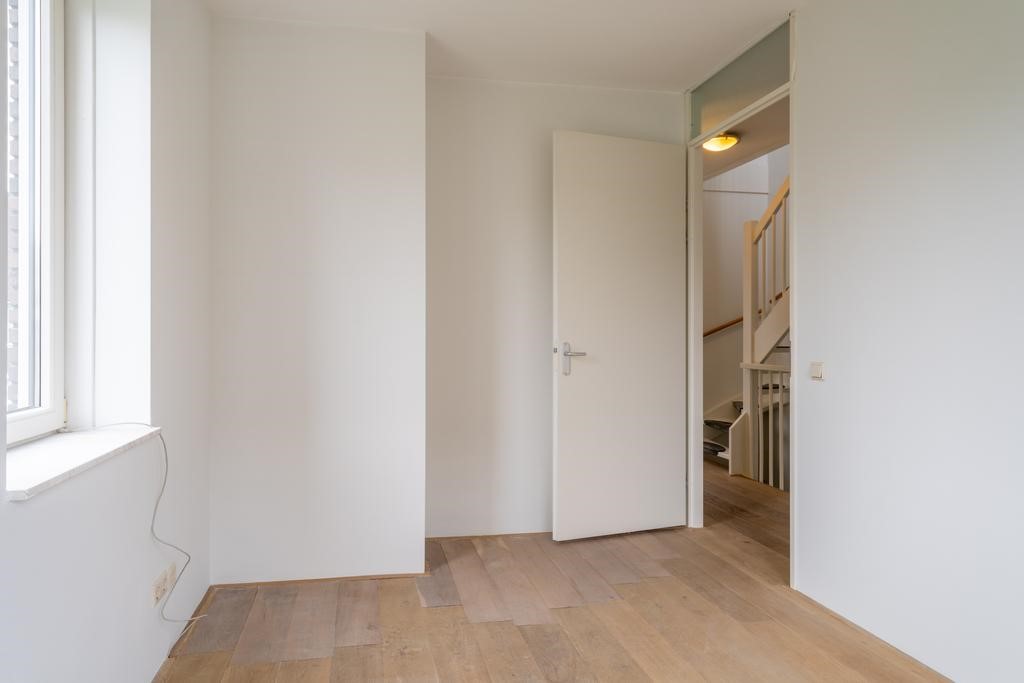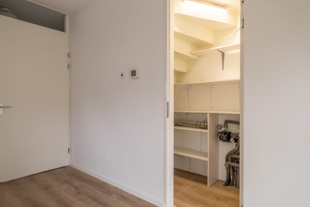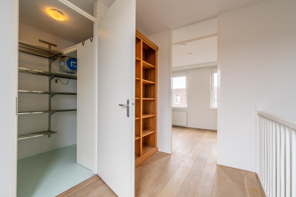 Op de tweede verdieping vind je een ruime inpandige berging, een slaapkamer en vanaf de overloop heeft u toegang tot het zonnige dakterras aan de achterzijde.