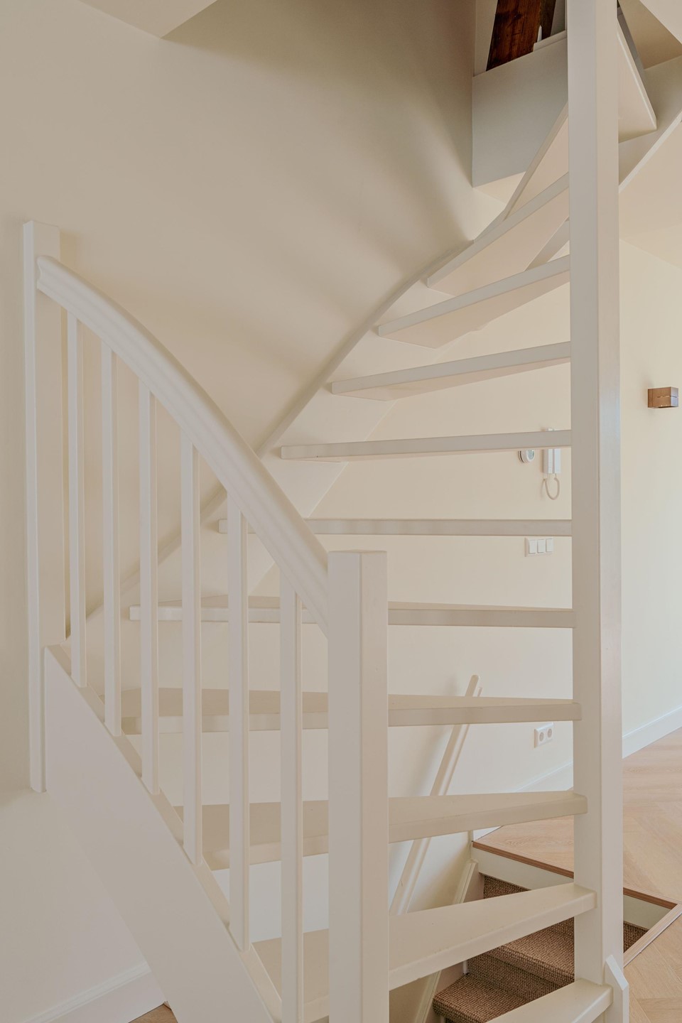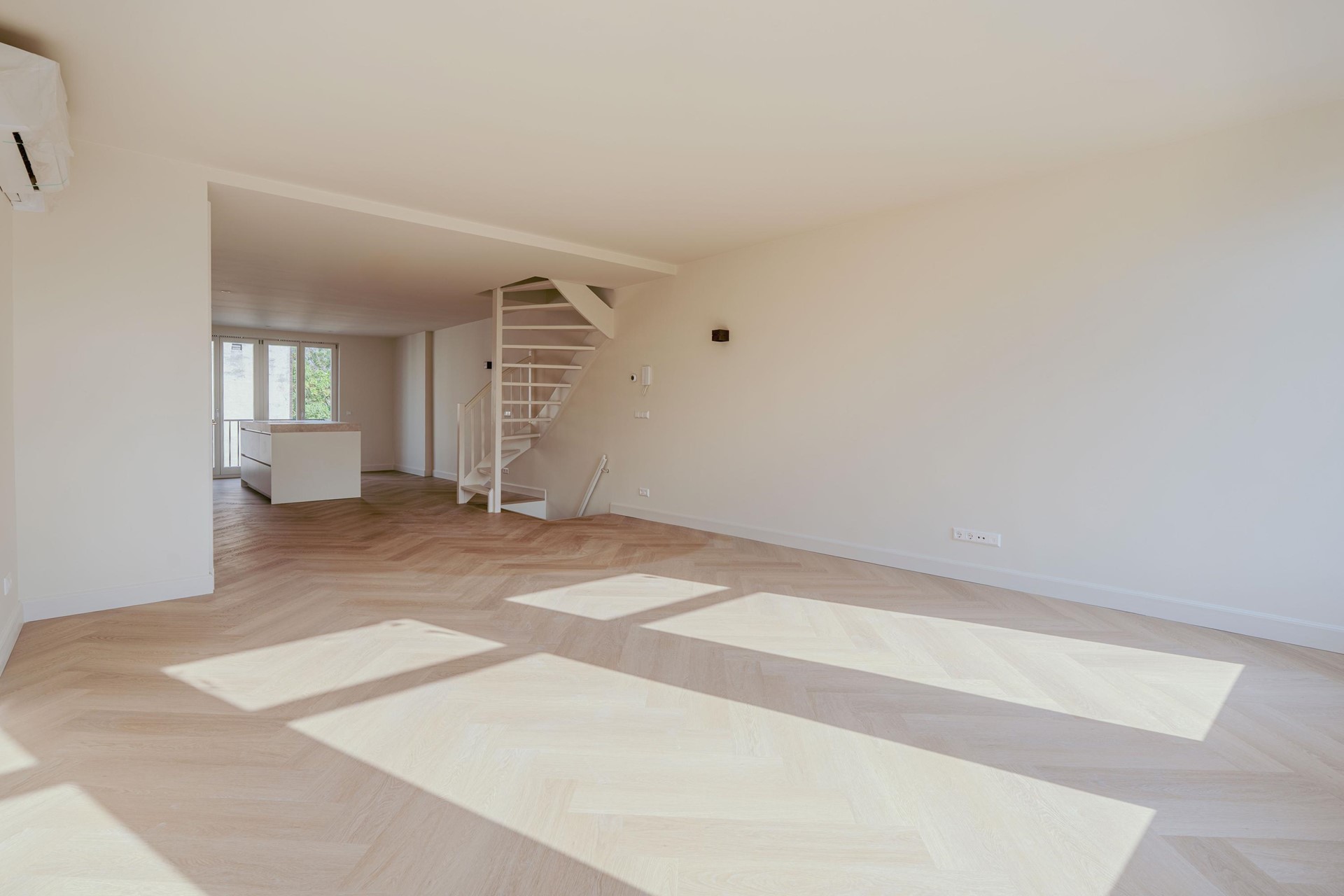 Via het gemeenschappelijke trappenhuis bereikt u de entree van de woning op de tweede verdieping. Vanuit de hal leidt de trap naar de derde verdieping, waar u direct wordt verwelkomd door de ruime en lichte leefruimte.