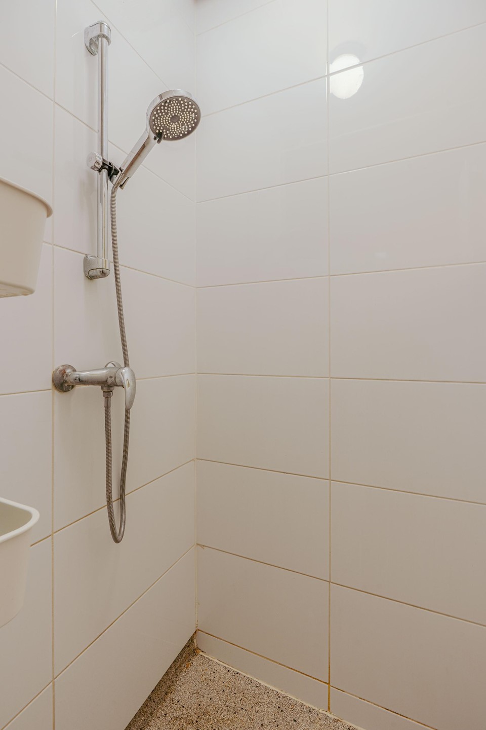 De badkamer is voorzien van een douche en wastafel. Daarnaast is er een separaat toilet aanwezig. Extra opbergruimte is aanwezig in de vaste kasten.