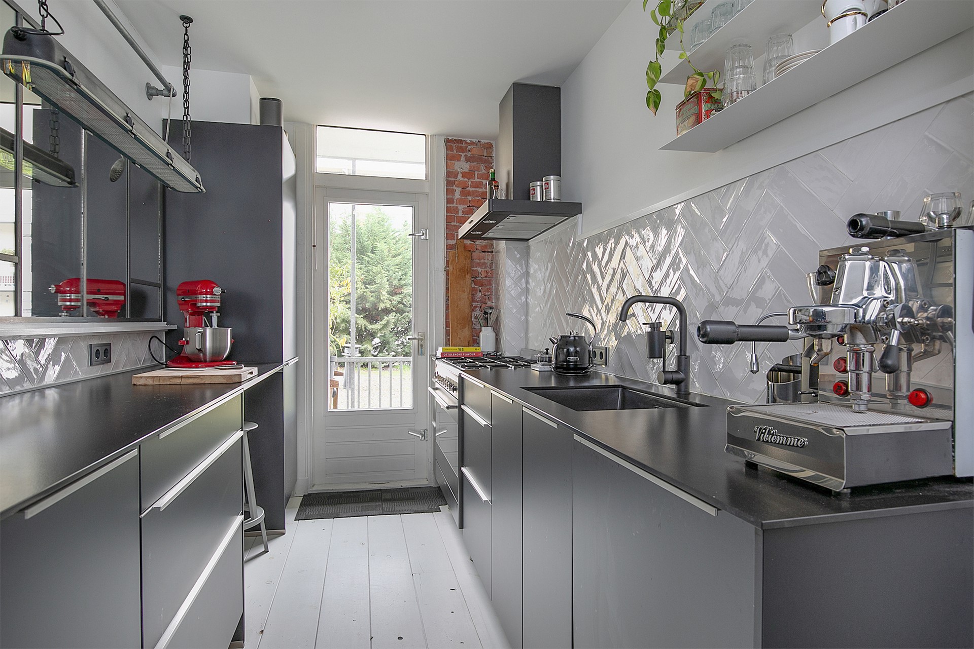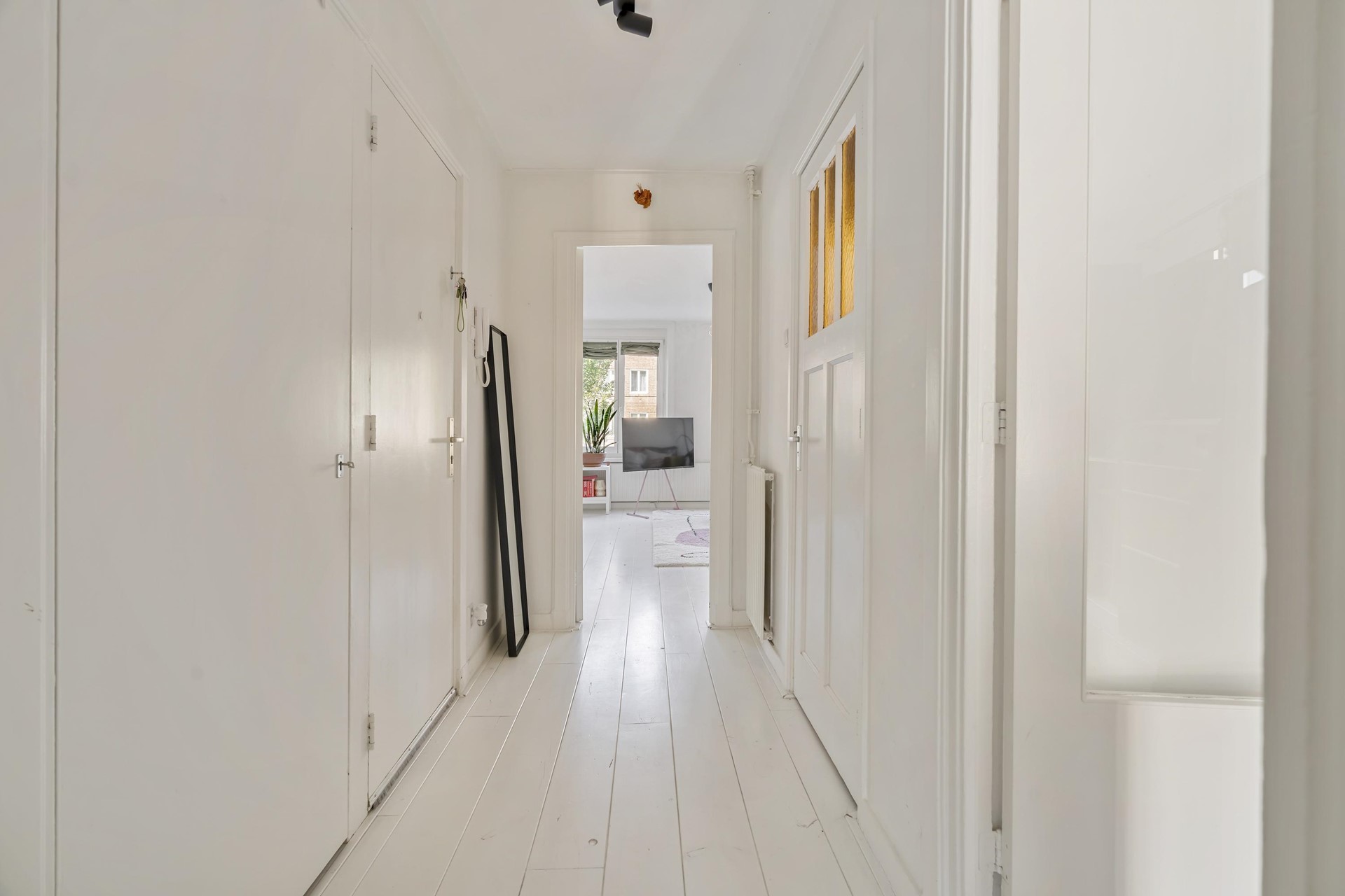 Op de eerste verdieping van een karakteristiek jaren ’20-blok ligt dit lichte en smaakvol afgewerkte appartement van circa 57 m² met energielabel C. De witte, massief houten vloeren, hoge plafonds en grote raampartijen geven de woonkamer een prettige uitstraling. De moderne, matzwarte keuken met robuust werkblad en riante 5-pitskookplaat ligt aan de tuinzijde en geeft via een deur toegang tot het brede balkon op het oosten—ideaal voor de ochtendzon en een vroege lunch. De slaapkamer aan de achterzijde is royaal bemeten en beschikt over vaste kasten; de badkamer is hedendaags uitgevoerd met inloopdouche, glazen wand en hangend sanitair. Boven in het gebouw hoort een grote zolderberging bij de woning voorzien van lichtinval en deels geisoleerd. Daarnaast is het appartement voorzien van glasvezel voor razendsnel internet.
