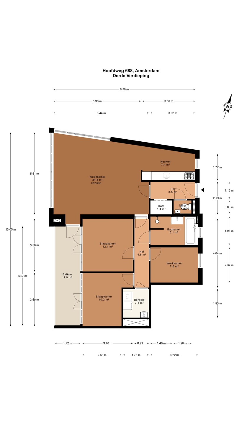 Are you looking for a spacious and comfortable apartment in a fantastic location in Amsterdam? This beautiful corner apartment of no less than 95 m² has everything you need: a bright living room, a modern open kitchen, three well-sized bedrooms, and a generous balcony where you can fully enjoy the afternoon and evening sun.