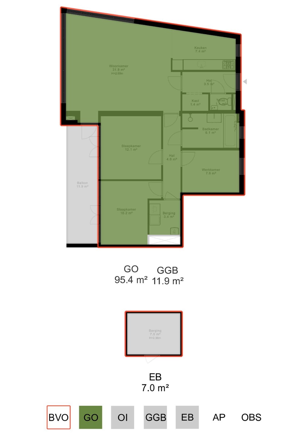 - Privéberging van 7 m² in de onderbouw