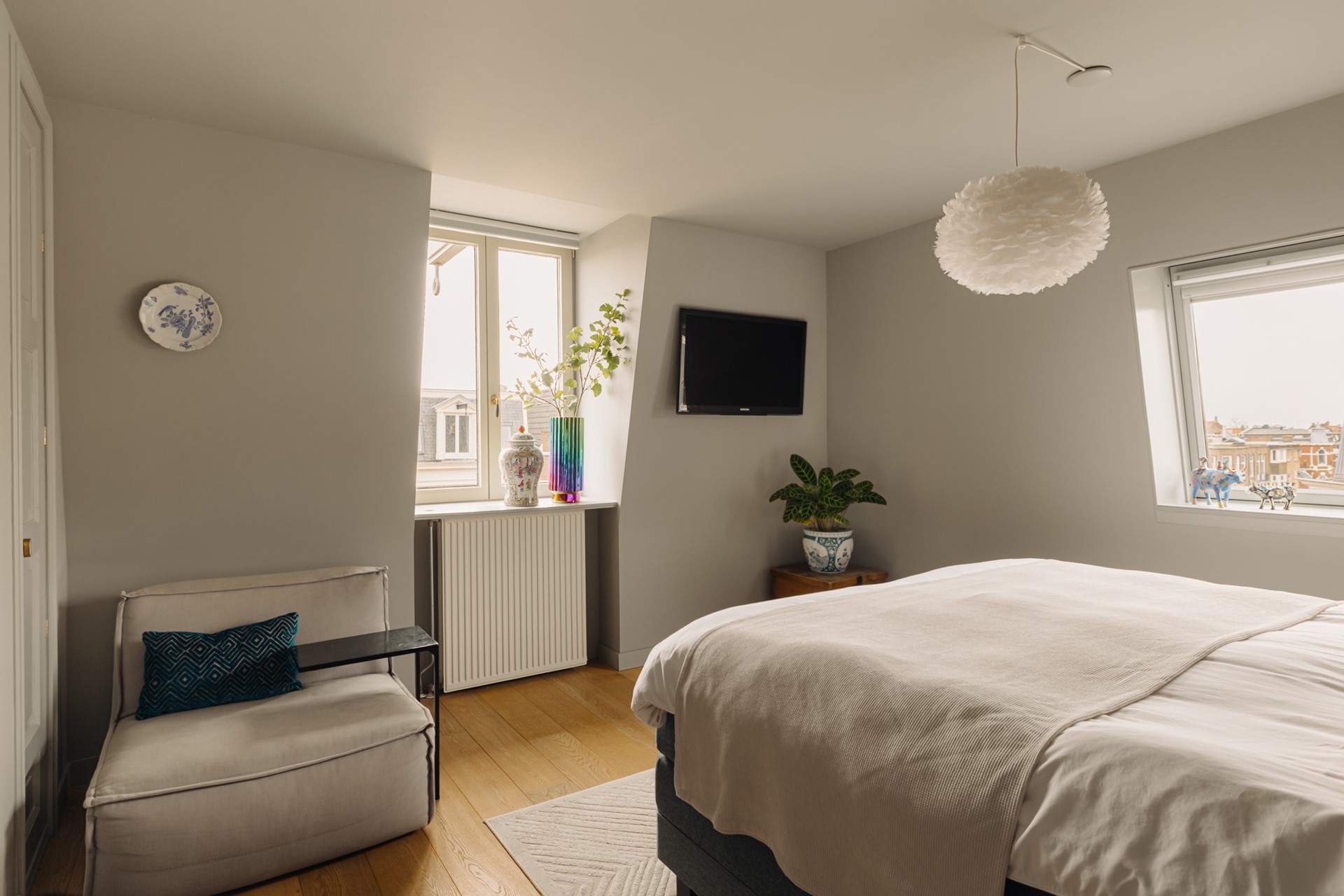 Op een markante hoek in de Watergraafsmeer ligt dit royale dubbel bovenhuis van ca. 161 m². Met een plafondhoogte van bijna 3 meter, een overvloed aan daglicht en een dakterras van 47 m² voelt dit huis groots, luchtig en tegelijk comfortabel. De woning is gelegen op eigen grond en beschikt over een duurzaam energielabel A.