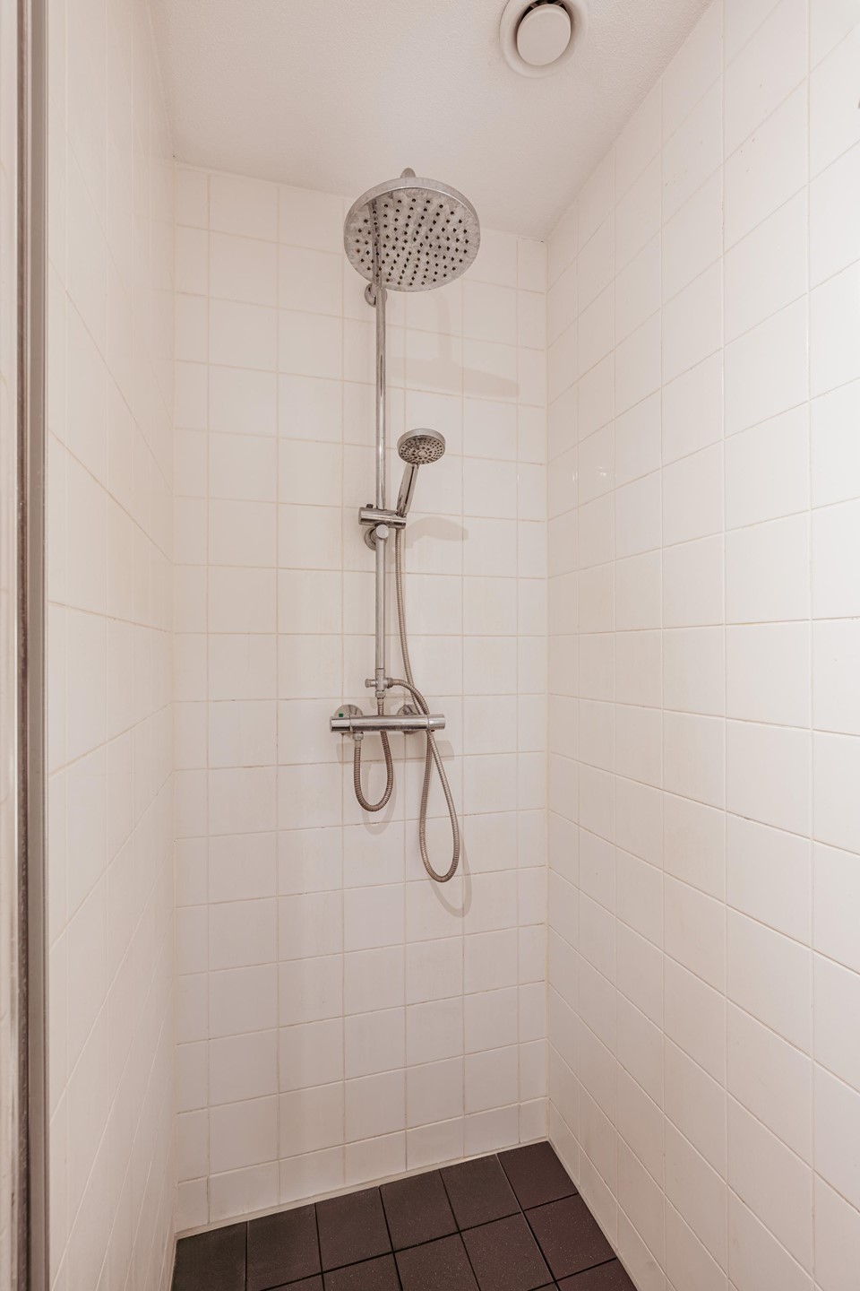Via de centrale hal bereikt u de badkamer, voorzien van een toilet, wastafel en douche. De woning beschikt daarnaast over een rustige slaapkamer aan de achterzijde, een fijne plek om u terug te trekken en te genieten van privacy en comfort. Vanuit de slaapkamer heeft u directe toegang tot het balkon, een prettige buitenruimte van 5 m2,op het zuiden!