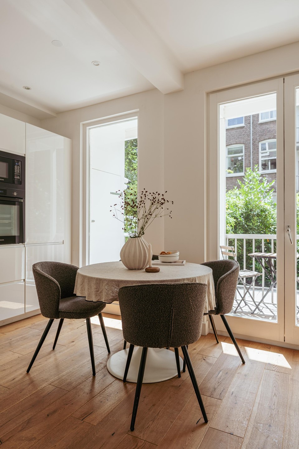 Rustenburgerstraat is located right in the lively Nieuwe Pijp, a relatively quiet street yet just around the corner from everything the neighborhood has to offer. Think of the famous Albert Cuyp Market, numerous shops, cafés and restaurants, and of course the Sarphatipark. With the North/South metro line, trams, and buses within walking distance, the rest of the city is easily accessible.