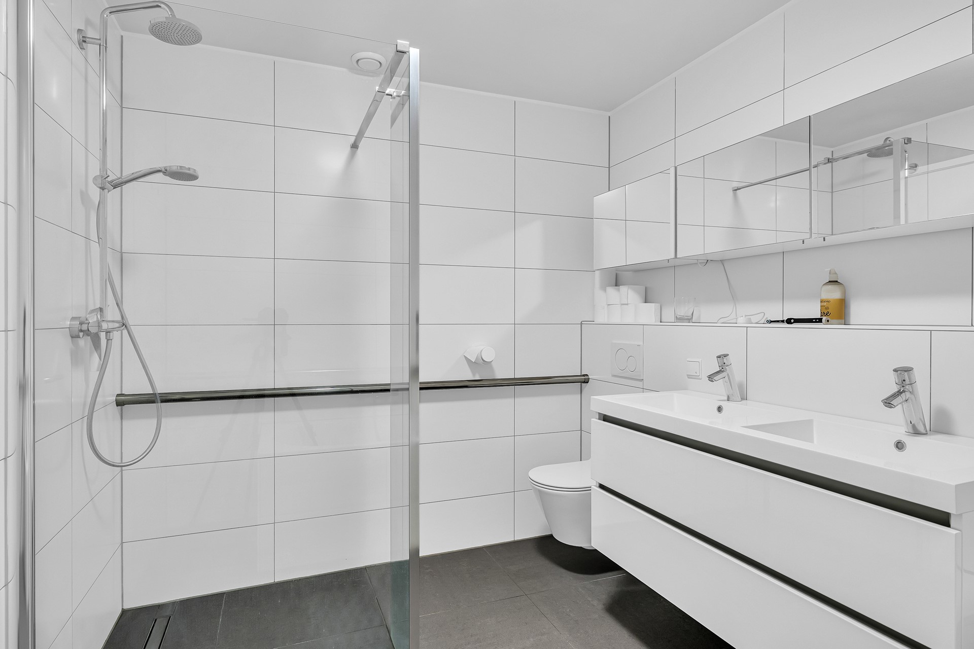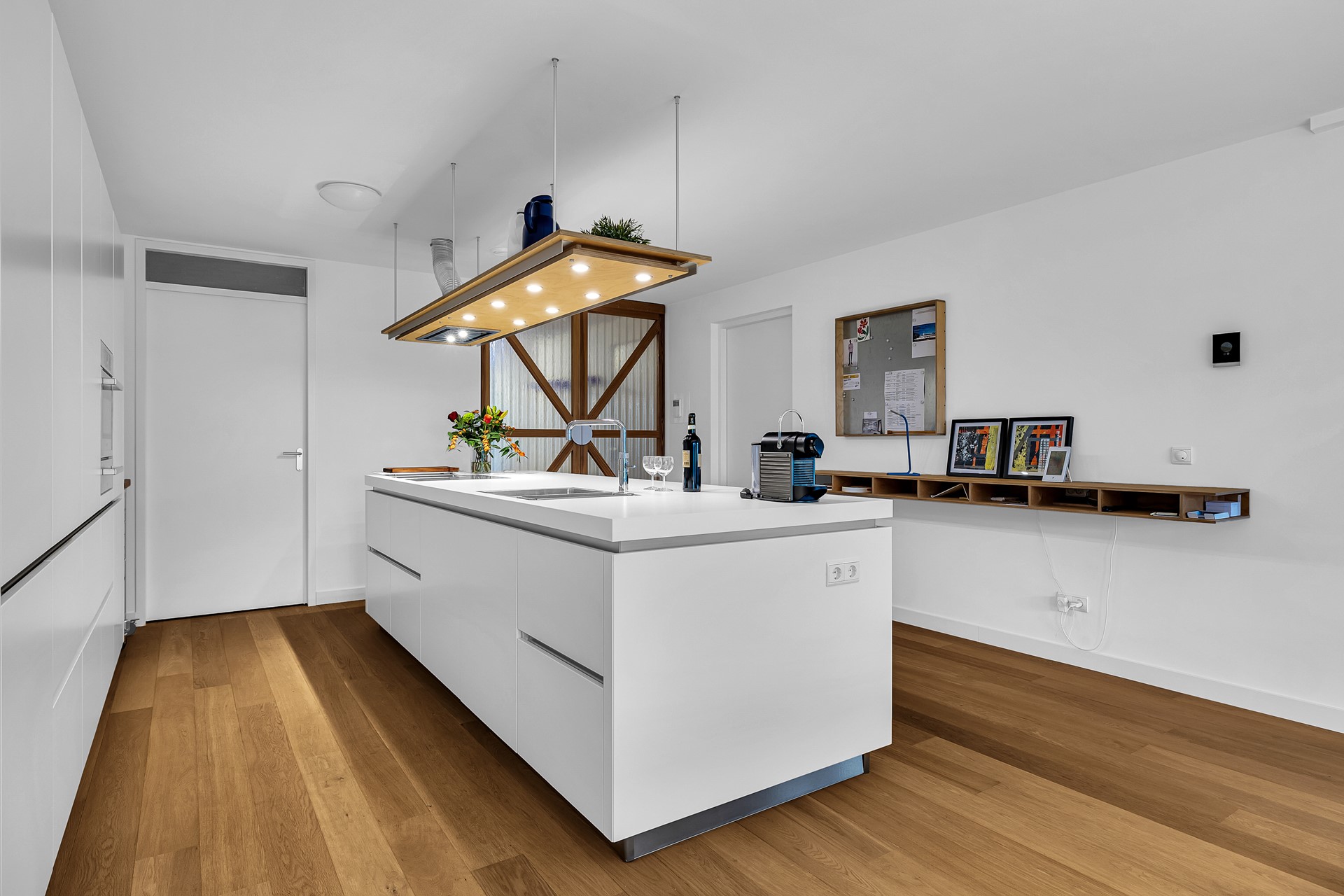Entree, ruime hal met garderobe en moderne meterkast, aparte (technische) ruimte met de CV ketel en aansluiting voor de wasmachine, modern zwevend toilet met fontein, eerste royale slaapkamer met eigen badkamer welke is voorzien van een inloopdouche en wastafel. Tweede royale slaapkamer met balkon en eigen moderne badkamer. De badkamer is voorzien van een ligbad, inloopdouche, zwevend toilet en dubbelwastafel meubel. Vanuit de hal is middels dubbele deuren de royale woon/eetkamer met luxe openkeuken bereikbaar welke ondermeer is voorzien van een kookeiland met inductiekookplaat, afzuigkap, vaatwasser, Quooker, oven, koelkast en veel kastruimte. Naast de keuken is een bijkeuken aanwezig waar men een 2e koelkast kan plaatsen en veel provisieruimte heeft. De woonkamer heeft een speelse indeling en heeft een goede lichtinval. Bij het eetgedeelte is de schuifpui naar het royale terras welke is gesitueerd op het Zuiden. Het terras is overdekt en is voorzien van elektra en een buitenkraantje.