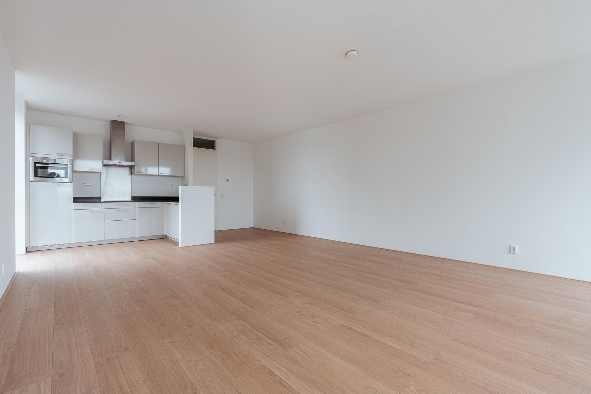 De royale woonkamer is licht en ruim opgezet en vormt samen met de open keuken een prettige leefruimte. Dankzij de grote raampartijen is er veel natuurlijke lichtinval, wat bijdraagt aan een open en aangename sfeer.