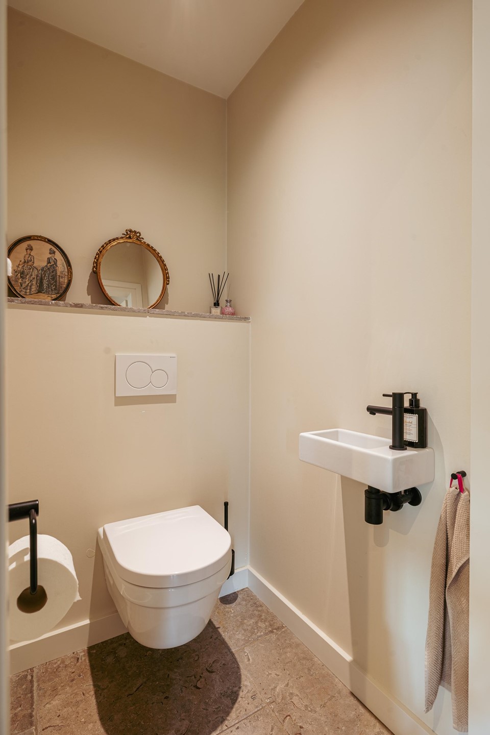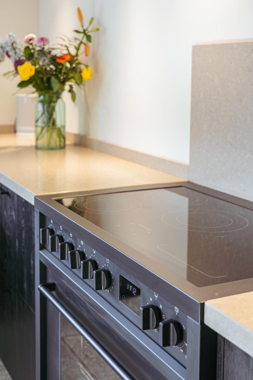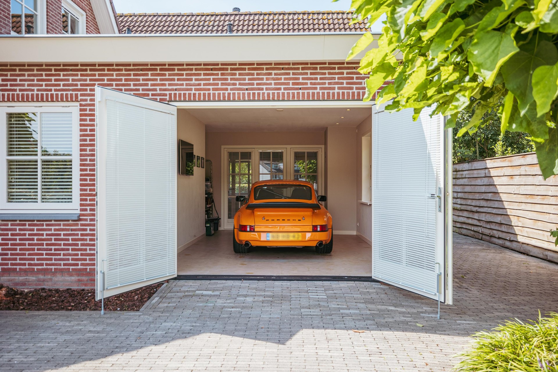 The spacious entrance with void and oak staircase forms an inviting arrival. From the hall, the main rooms are accessible: a bright living room with fireplace, a generous kitchen with French doors to the garden, a bedroom, utility room and separate toilet. The kitchen (2021) is equipped with high-quality built-in appliances and a 90 cm stove, designed as the central place in the home. On the garden side is a multifunctional extension, now used as a garage but easily adapted as an office or playroom.
