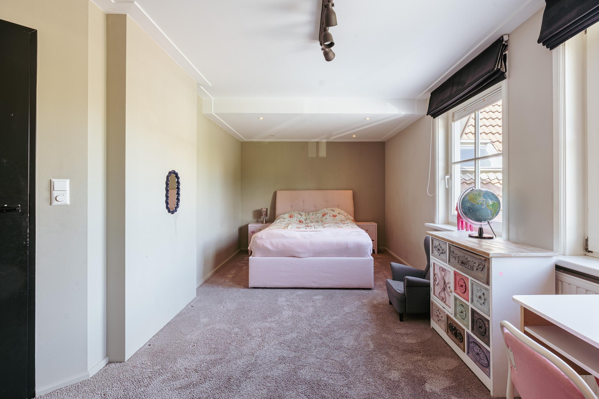 De hoofdslaapkamer heeft een vaste kastenwand en een luxe badkamer ensuite met ligbad, inloopdouche, dubbele wastafel en toilet. Daarnaast zijn er drie slaapkamers van goed formaat en een tweede badkamer met douche, dubbele wastafel en separaat toilet.