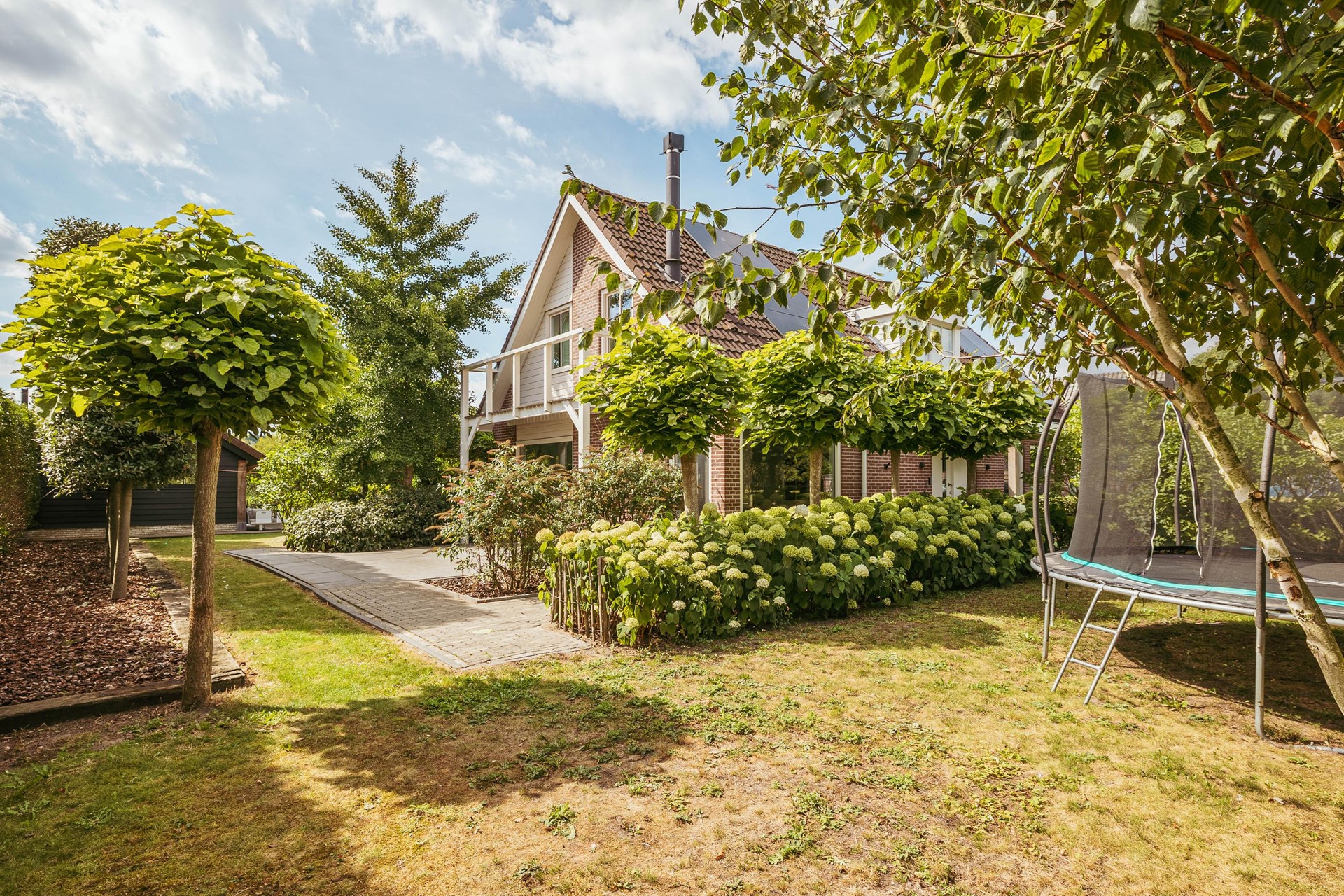 The garden was designed by a landscape architect and offers several terraces and seating areas, always with sun and a view of the ornamental water. The eye-catcher is the heated outdoor pool with adjoining jacuzzi, a place that invites relaxation in every season. The plot is completely private and accessible via a private driveway with electric gate and intercom. Parking is generous on site, with space for about 4-5 cars.