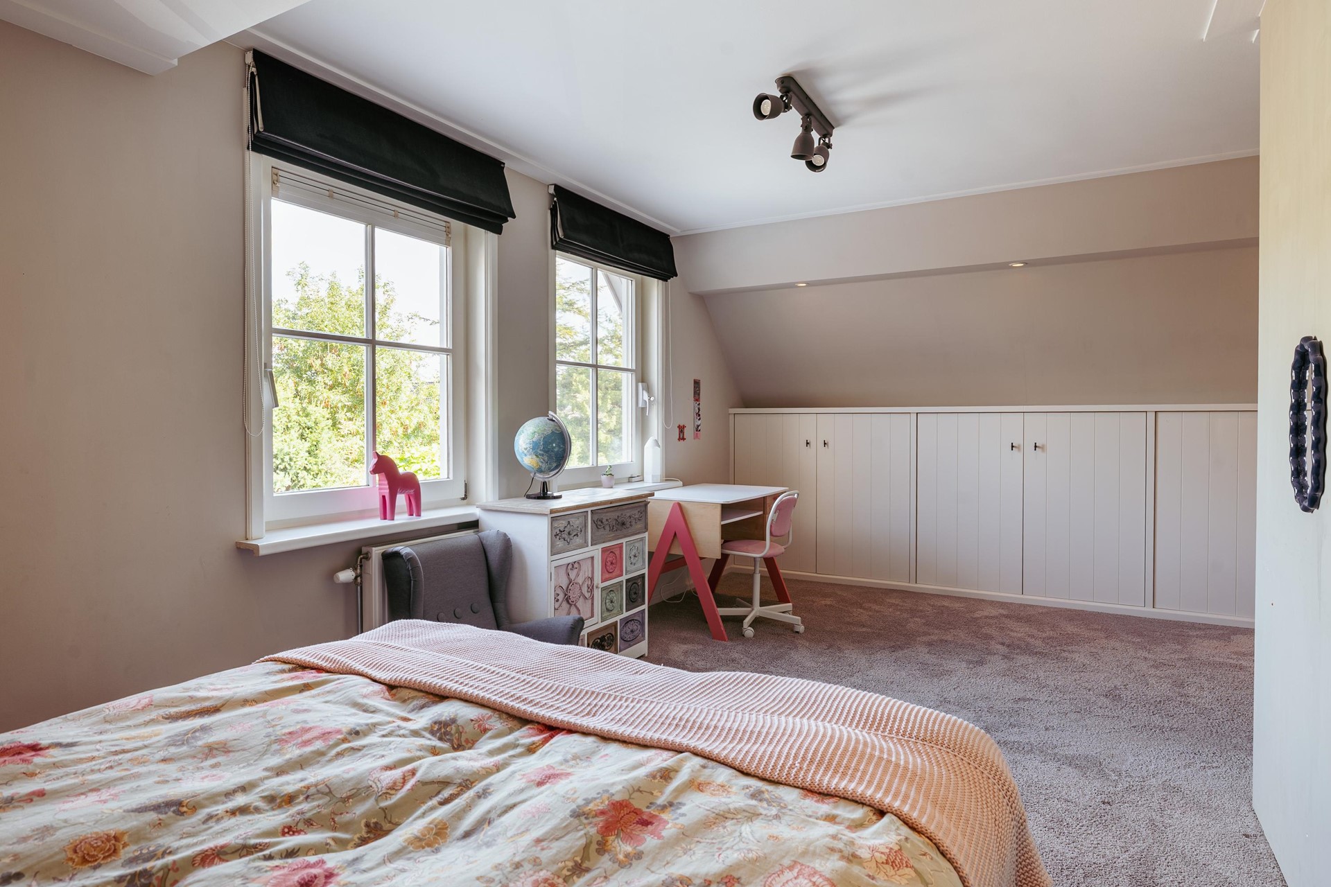 De hoofdslaapkamer heeft een vaste kastenwand en een luxe badkamer ensuite met ligbad, inloopdouche, dubbele wastafel en toilet. Daarnaast zijn er drie slaapkamers van goed formaat en een tweede badkamer met douche, dubbele wastafel en separaat toilet.