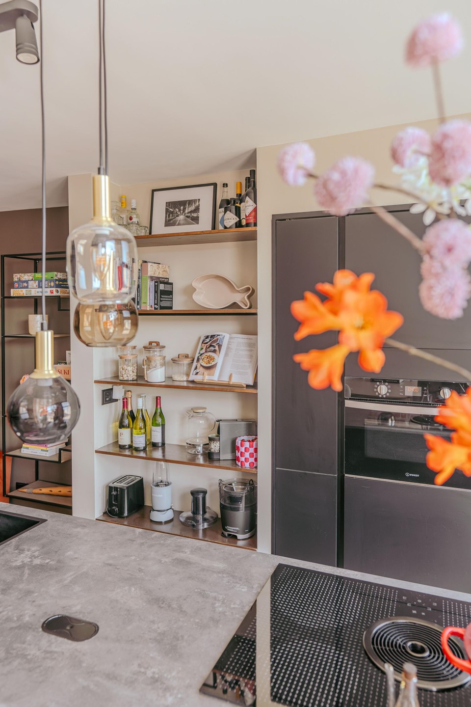 Je betreedt de woning op de derde verdieping, in de hal met garderobe en wc. De luxe keuken met modern kookeiland en hoogwaardige inbouwapparatuur, zoals een Bora inductieplaat en kokendwaterkraan, vormt het hart van het appartement. Voor het kookeiland is een gezellige eethoek gecreëerd - perfect voor lange diners of een snelle ochtendkoffie. Aan de achterzijde ligt het woongedeelte, met volop ruimte voor een grote bank en een comfortabele loungehoek met TV. Dankzij de grote ramen en vloerverwarming is dit een lichte, warme en uitnodigende leefruimte. Alle lampen (ook boven) zijn voorzien van Hue, waardoor je de sfeer in de woning volledig naar je eigen hand kunt zetten.