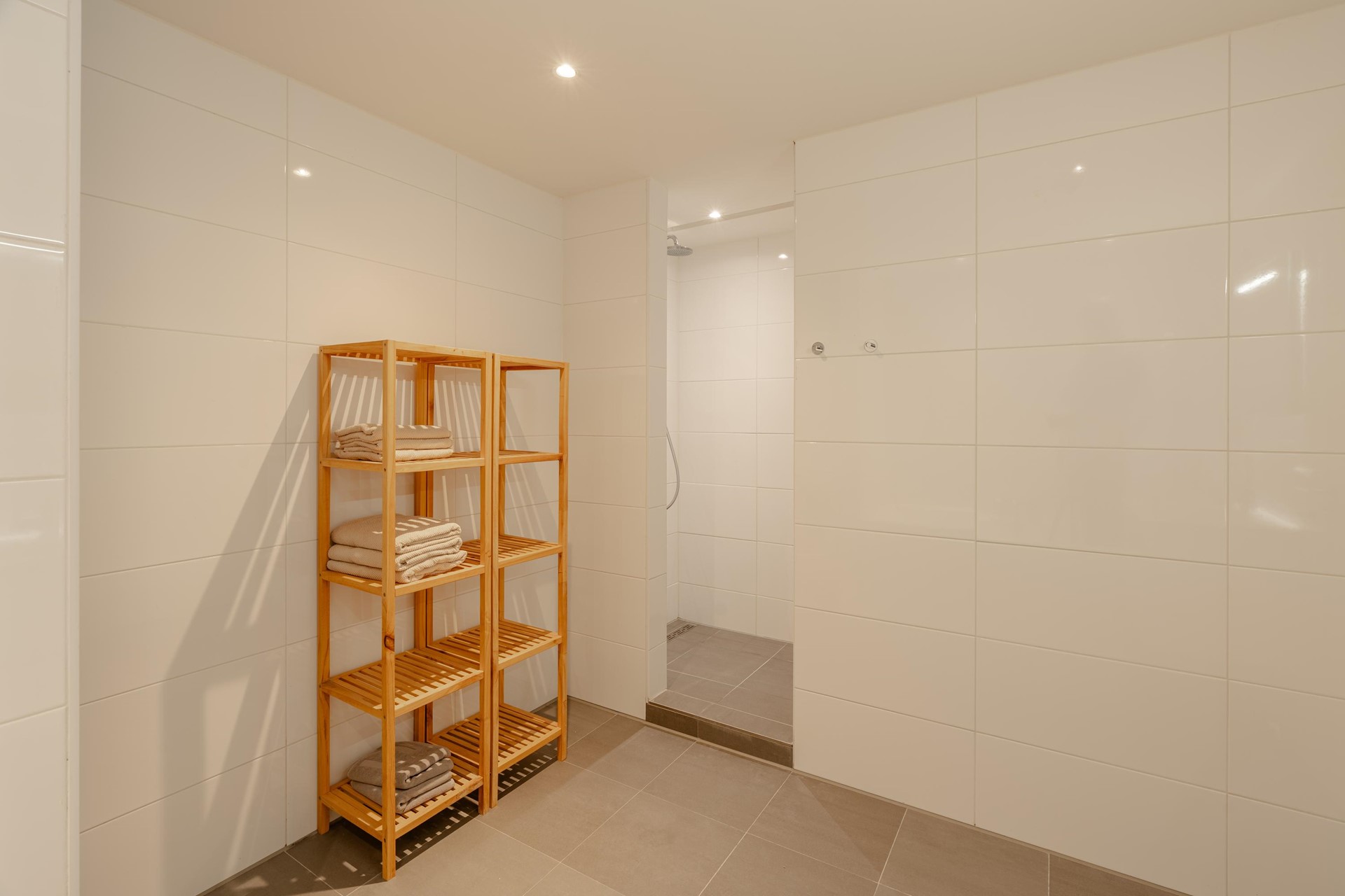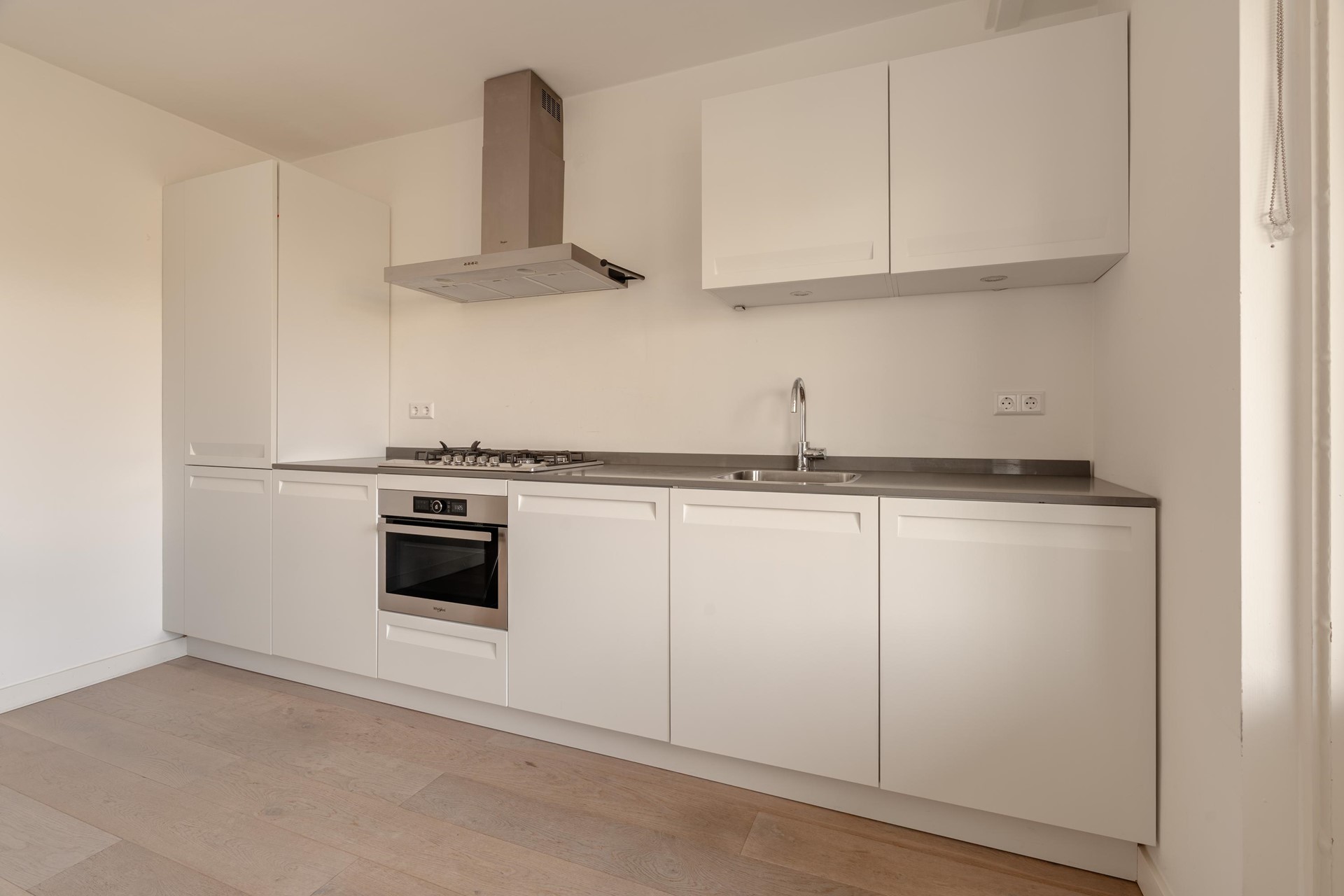 Het appartement beschikt over een ruime en lichte woonkamer met een luxe matte witte keuken. De keuken is voorzien van diverse inbouwapparatuur, waaronder een 5-pits gasfornuis met wokbrander, RVS afzuigkap, koelkast met separate vriezer, combimagnetron en een vaatwasser.