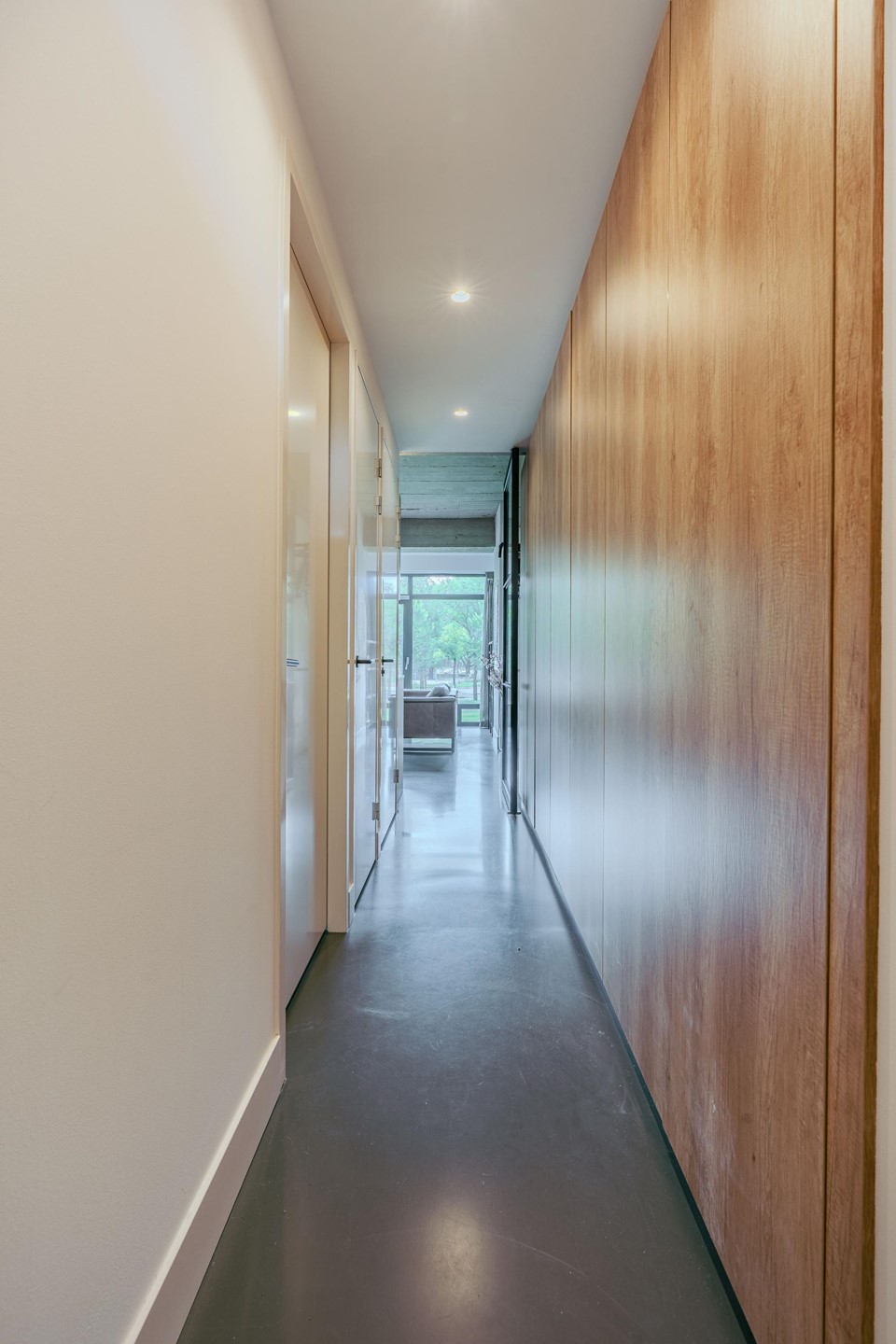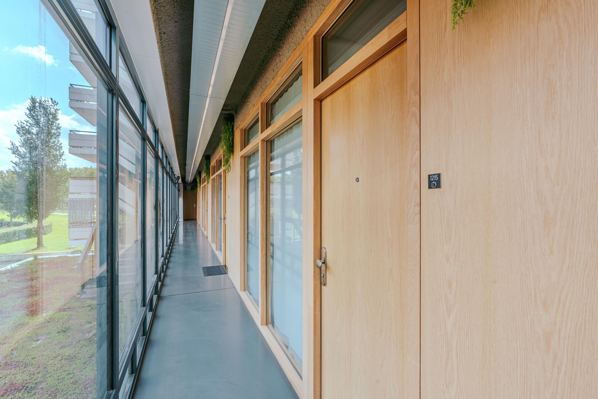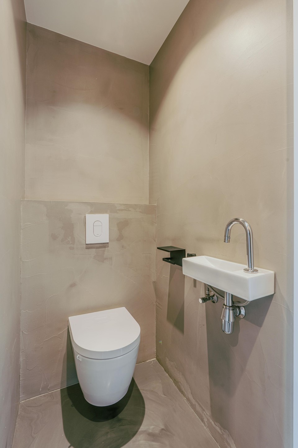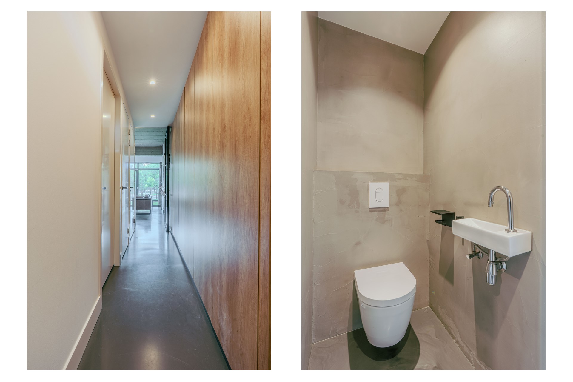 Bij binnenkomst valt direct de ruime hal op met een prachtige, lange ingebouwde kastenwand – ideaal om al je kleding en spullen netjes in op te bergen. Vanuit de hal bereik je het separate toilet en loop je door naar de woonkamer. De woonkamer is licht en ruimtelijk dankzij de grote raampartijen en door middel van een schuifdeur open je de deuren en je geniet van het uitzicht op groen en water. De gehele woning is voorzien van een strakke gietvloer, wat zorgt voor een moderne en onderhoudsvriendelijke basis. De open keuken is modern en luxe uitgevoerd met alle gemakken: een inbouwkoelkast, combi-oven, inductiekookplaat en vaatwasser. De combinatie van warme houttinten in de keuken en de kastenwand geeft het appartement een stijlvol geheel met een industriële maar warme uitstraling. Aan de achterzijde van de woning bevindt zich de ruime slaapkamer. Hier is voldoende plek voor een tweepersoonsbed en een royale kastenwand, zodat ook deze ruimte praktisch én comfortabel kan worden ingericht. Dankzij de rustige ligging is het de ideale plek om je terug te trekken na een drukke dag. De slaapkamer grenst direct aan de badkamer, die modern is afgewerkt met een inloopdouche, grote verwarmde spiegel en een strak wastafelmeubel. Dankzij de doordachte indeling en hoogwaardige afwerking is de woning direct bewoonbaar, zonder dat er nog iets hoeft te gebeuren.