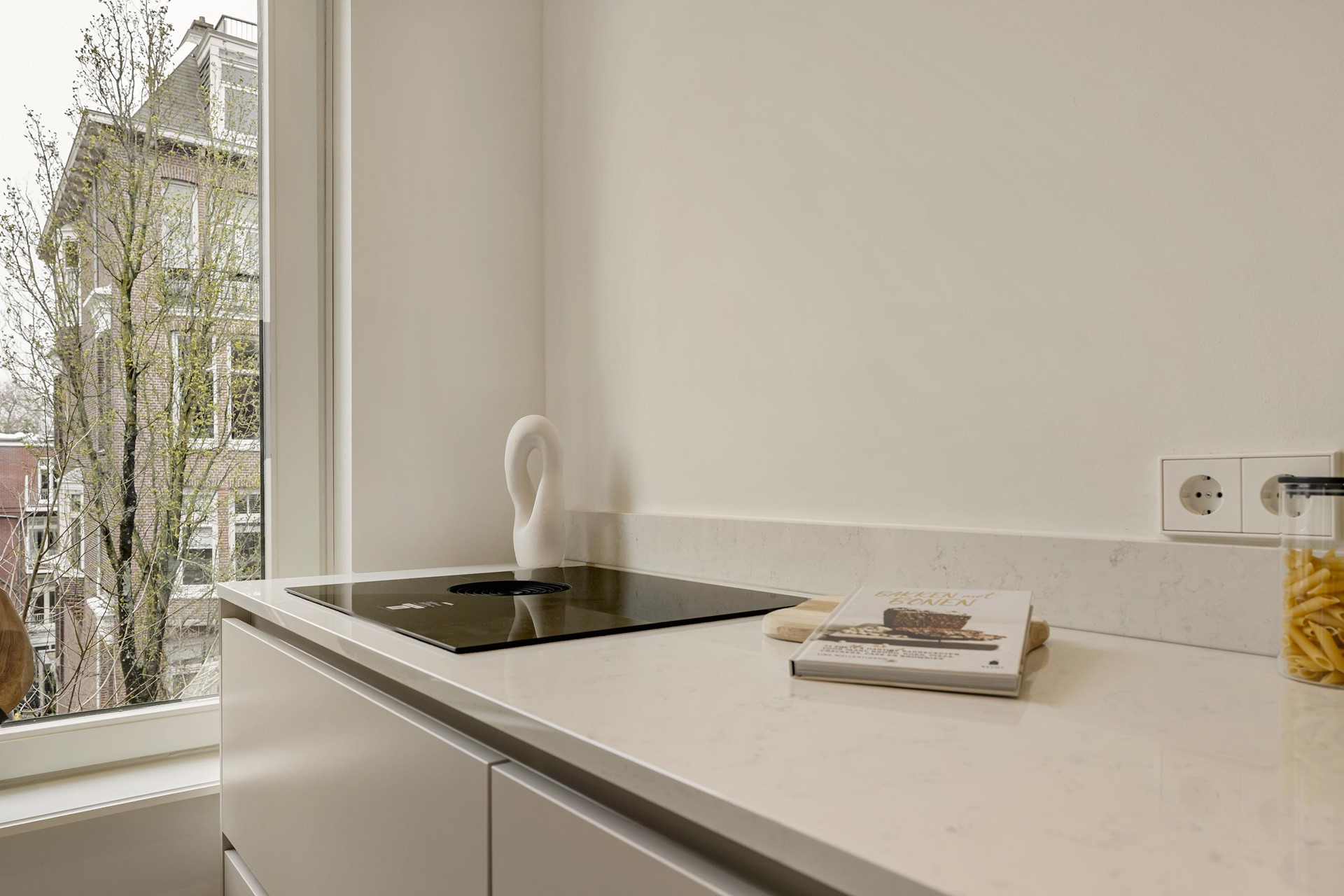 De moderne open keuken vormt het hart van de woning en is voorzien van luxe inbouwapparatuur, strakke kasten, een stijlvol werkblad én een Quooker, ideaal voor direct kokend water. Perfect voor zowel dagelijks gebruik als uitgebreid koken.
