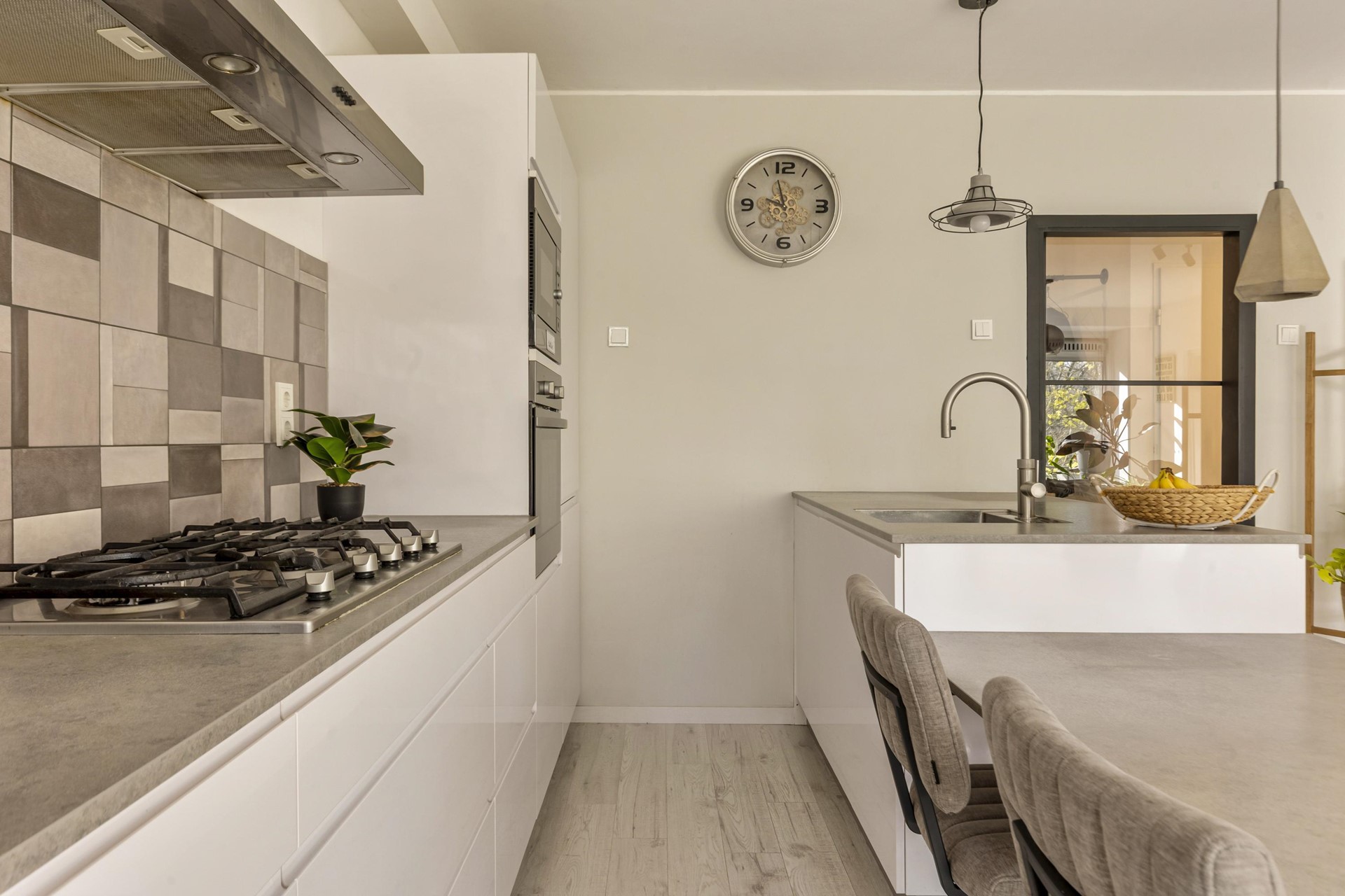 De moderne keuken (2017) is uitgerust met een spoeleiland, oven, magnetron en gasfornuis – een ideale plek om te koken en tegelijkertijd in contact te blijven met je gasten.
