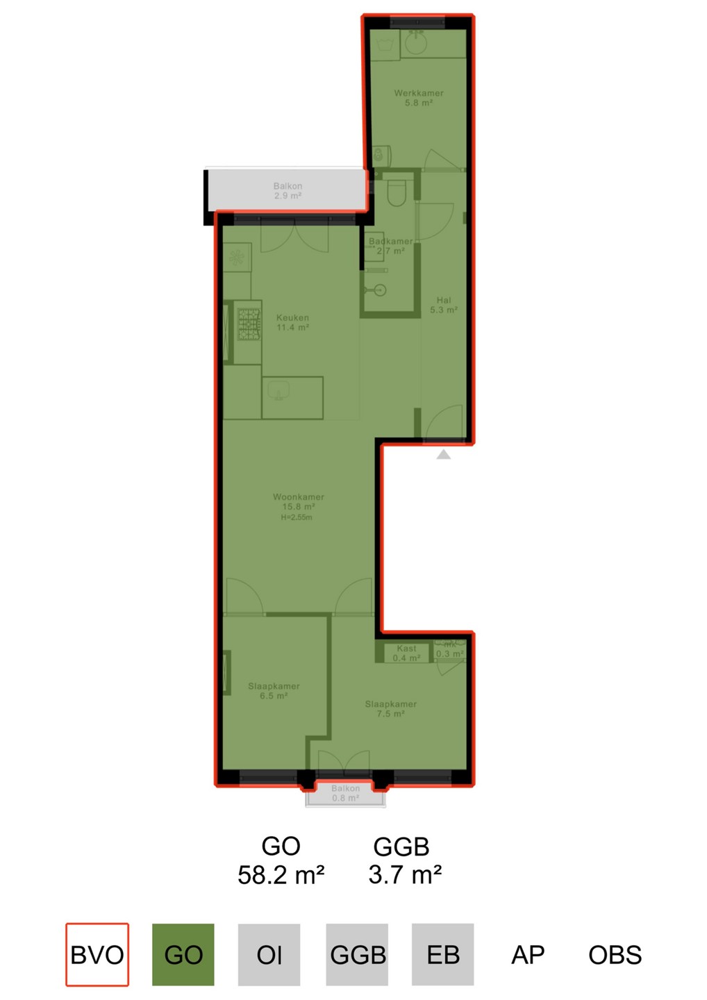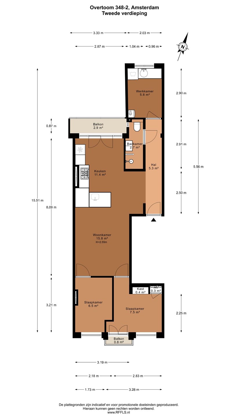 - Indeling: 4 kamers, waarvan 2 slaapkamers + een extra kamer aan de achterzijde;