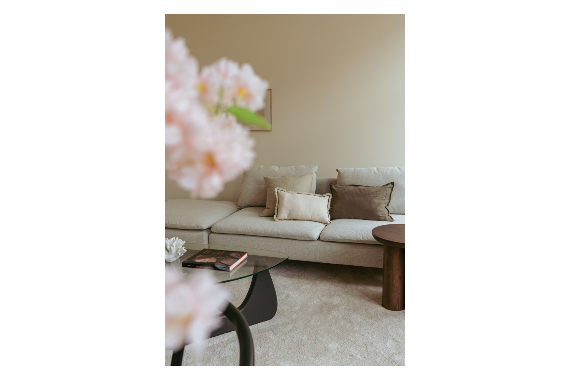 The modern kitchen is equipped with high-quality built-in appliances, ample storage, and plenty of workspace for cooking enthusiasts. Adjacent to the living room is a French balcony. The perfect spot to enjoy the afternoon sun.