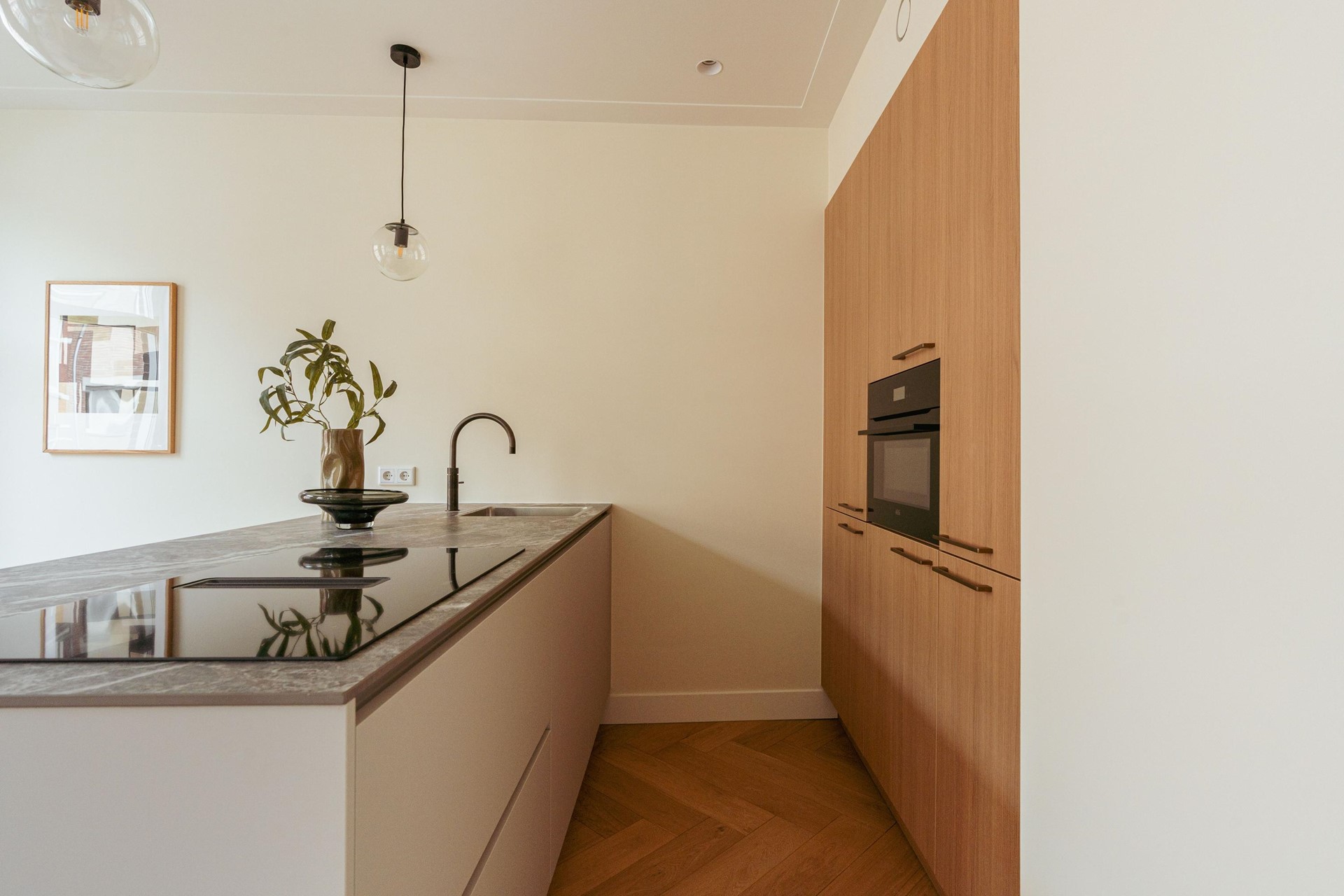 Via het gemeenschappelijke trappenhuis bereikt u de entree op de tweede verdieping. De hal geeft toegang tot alle vertrekken. De ruime woonkamer met open keuken vormt het hart van de woning. Dankzij de grote ramen valt hier de hele dag licht binnen. De moderne keuken is afgewerkt met hoogwaardige inbouwapparatuur, voldoende opbergruimte en biedt alle ruimte voor kookliefhebbers. Aansluitend aan de woonkamer bevindt zich een frans balkon. Perfect voor een momentje in de middagzon.