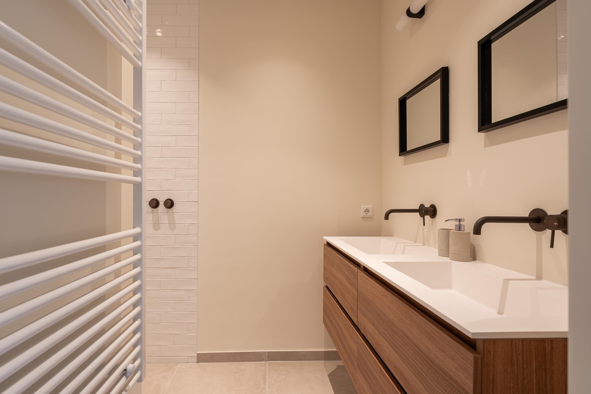 Centrally located in the apartment is the bathroom, fitted with a shower and washbasin. In addition, there is a separate toilet and a convenient storage cupboard.