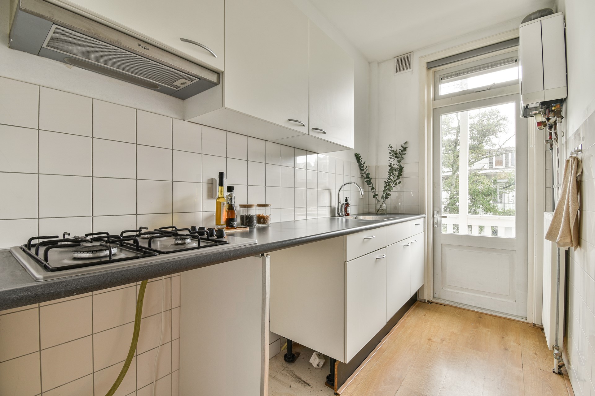 Centraal in de woning ligt de keuken, compact maar praktisch ingedeeld en direct verbonden met het balkon. Dit zorgt niet alleen voor extra licht en ventilatie tijdens het koken, maar maakt het ook eenvoudig om buiten te genieten van een kop koffie of een ontspannen moment in de zon.