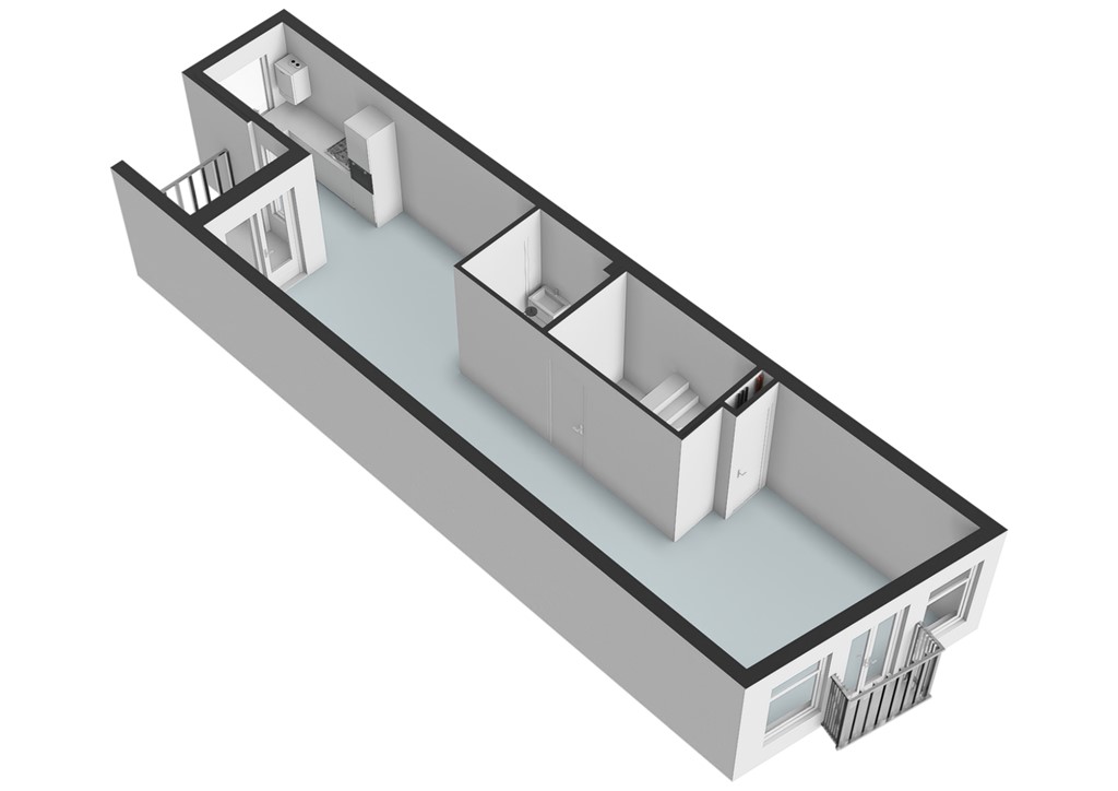 De open keuken is praktisch ingericht en van alle gemakken voorzien. De ruime slaapkamer biedt voldoende plek voor een groot bed en een kledingkast. De moderne badkamer is voorzien van een douche, wastafel en toilet.