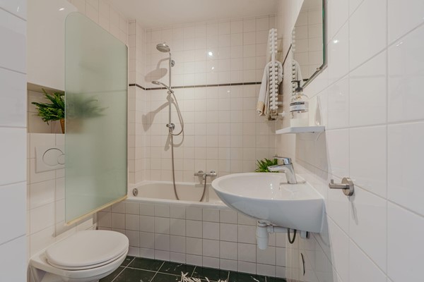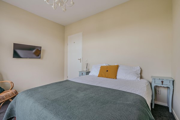 De woning heeft twee slaapkamers, een open keuken aan de voorzijde (uitgerust met inbouwapparatuur), en een neutrale badkamer met ligbad, toilet en wastafel. De woning is fris en verzorgd afgewerkt met een laminaatvloer en dubbel glas. Het energielabel is B – met een paar zonnepanelen op het dak upgrade je eenvoudig naar label A. Zo combineer je comfort met duurzaamheid, zonder gedoe.