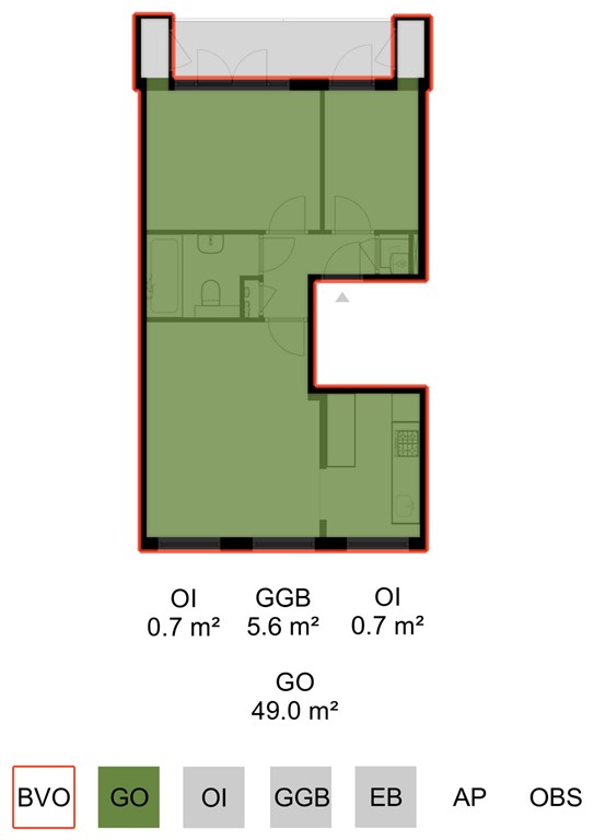 • Woonoppervlakte: 49 m² (zie meetrapport)