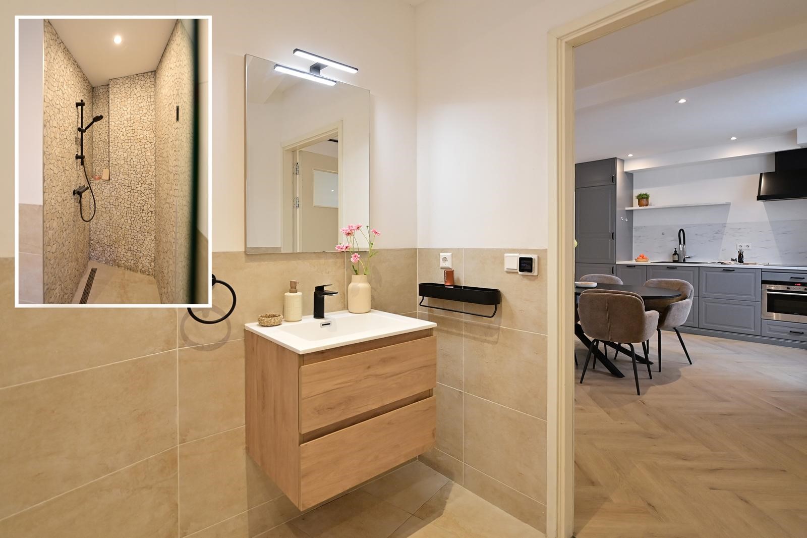 - Badkamer met vloerverwarming, wastafelmeubel, inloopdouche en wasmachineaansluiting