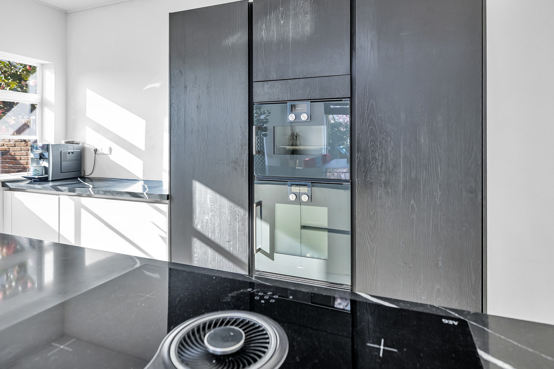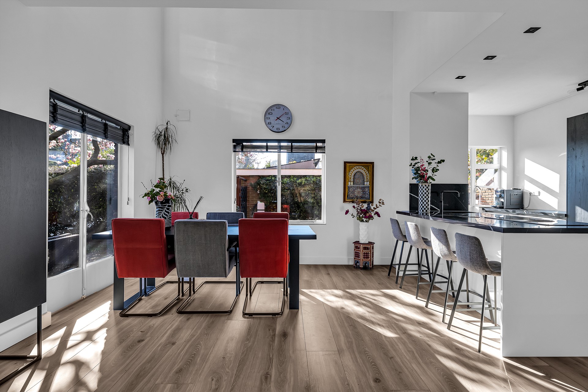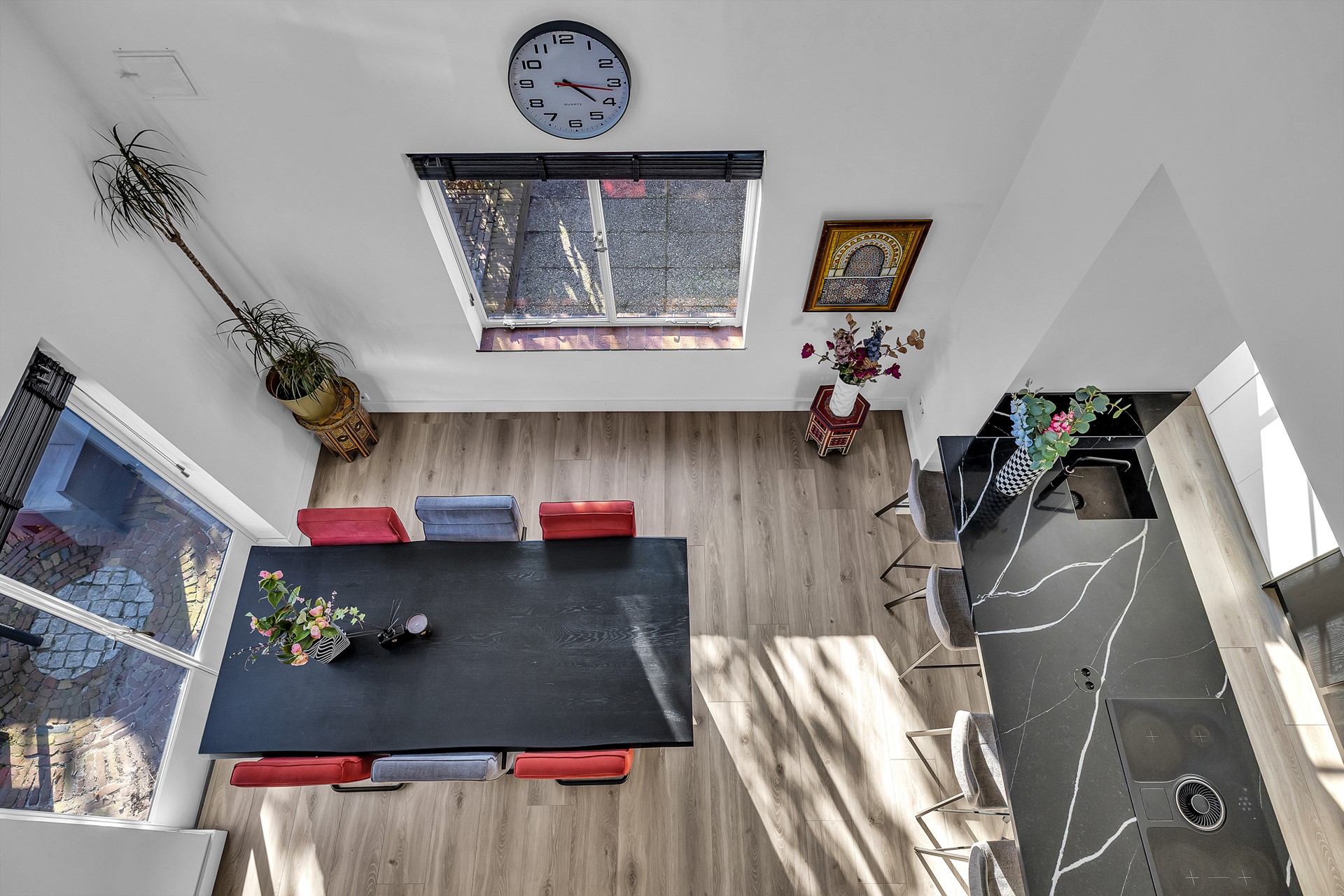 Binnen valt direct het licht en de ruimte op. Door de open indeling en de vide voelt het huis ruim en prettig aan. De eetkamer en keuken vormen één geheel, waardoor het echt een plek is waar je samen leeft. Koken, spelen of huiswerk maken. De living is een plek om gewoon lekker op de bank te crashen.