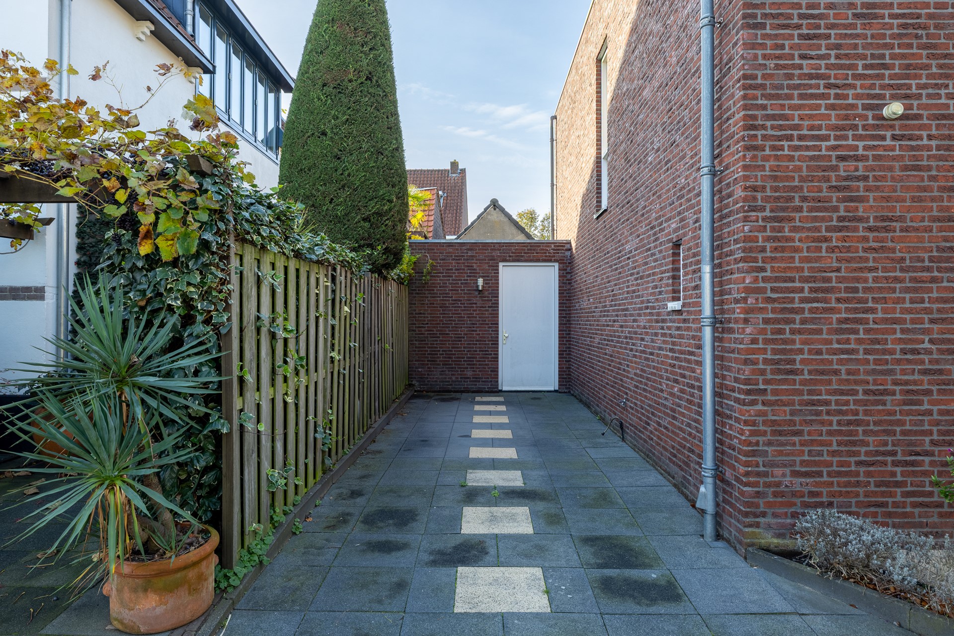 Aan de voorzijde een verzorgde voortuin met groen uitzicht over de rustige straat. Aan de zijkant een ruime inrit voor de auto met toegang tot garage/ chillruimte.