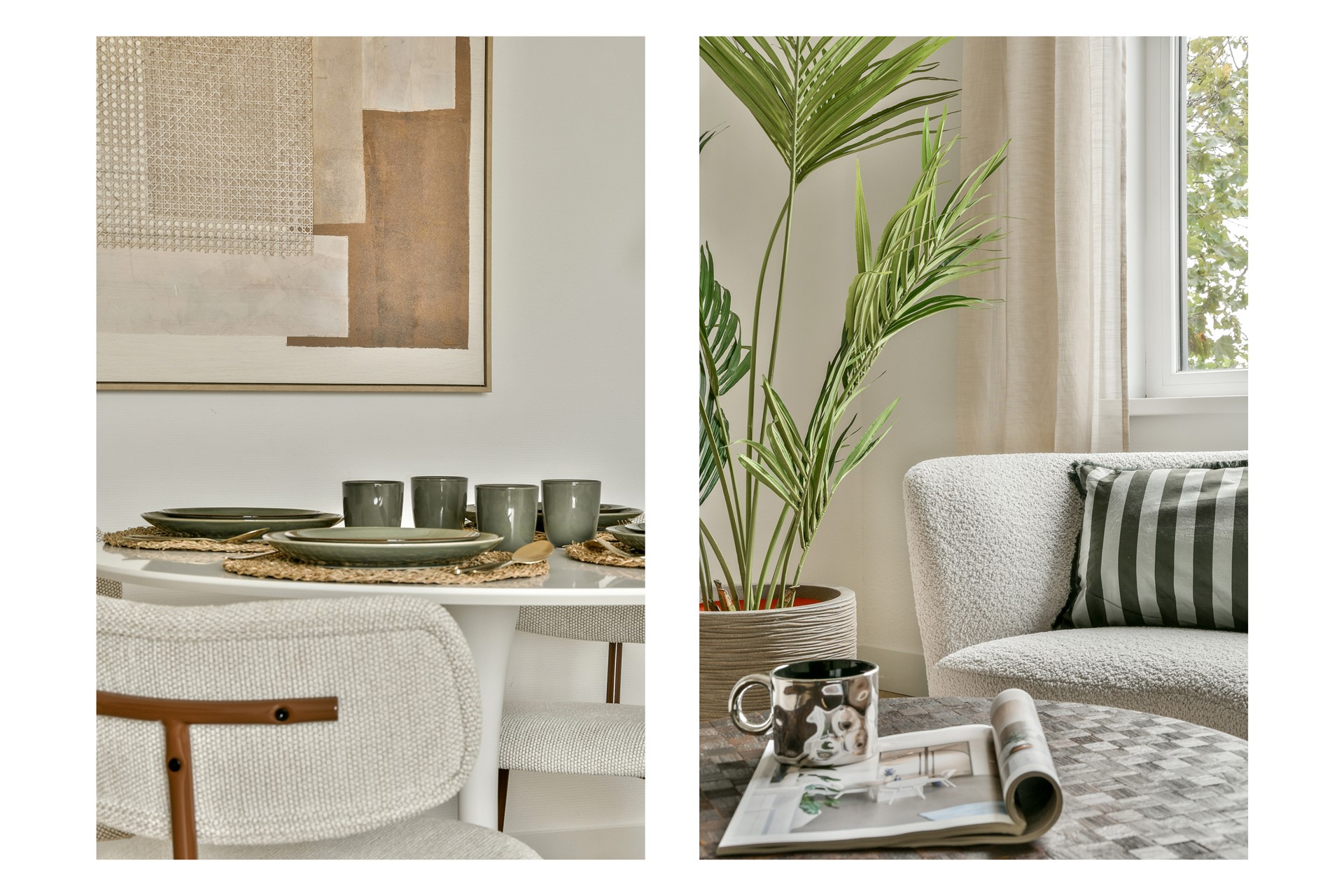 De woonkamer is een prettige, open ruimte met een plafondhoogte van maar liefst 2,80 meter, waardoor het gevoel van licht en lucht nog eens extra wordt versterkt. Hier is plek genoeg voor een gezellige zithoek, terwijl de aangrenzende eethoek uitnodigt tot lange avonden tafelen met vrienden of familie.