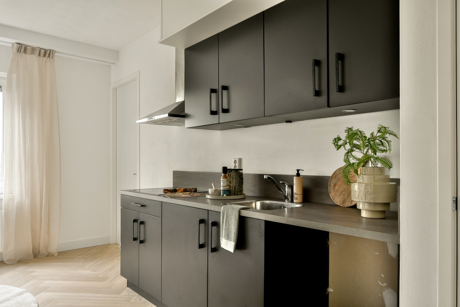 De keuken ligt centraal in de woning en is praktisch ingedeeld, met alles binnen handbereik. Of je nu snel een ontbijt maakt of uitgebreid kookt — deze keuken vormt het hart van het huis.