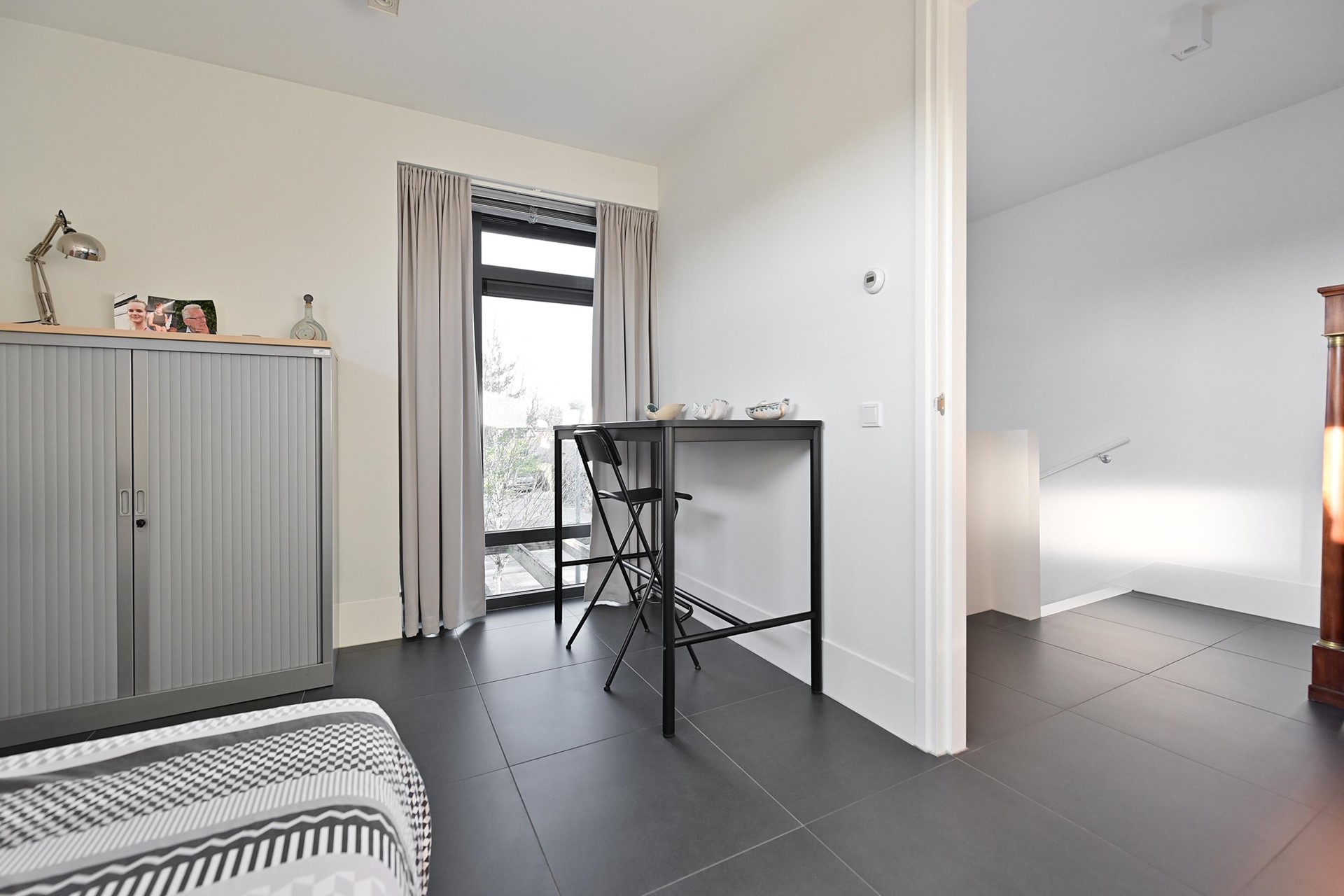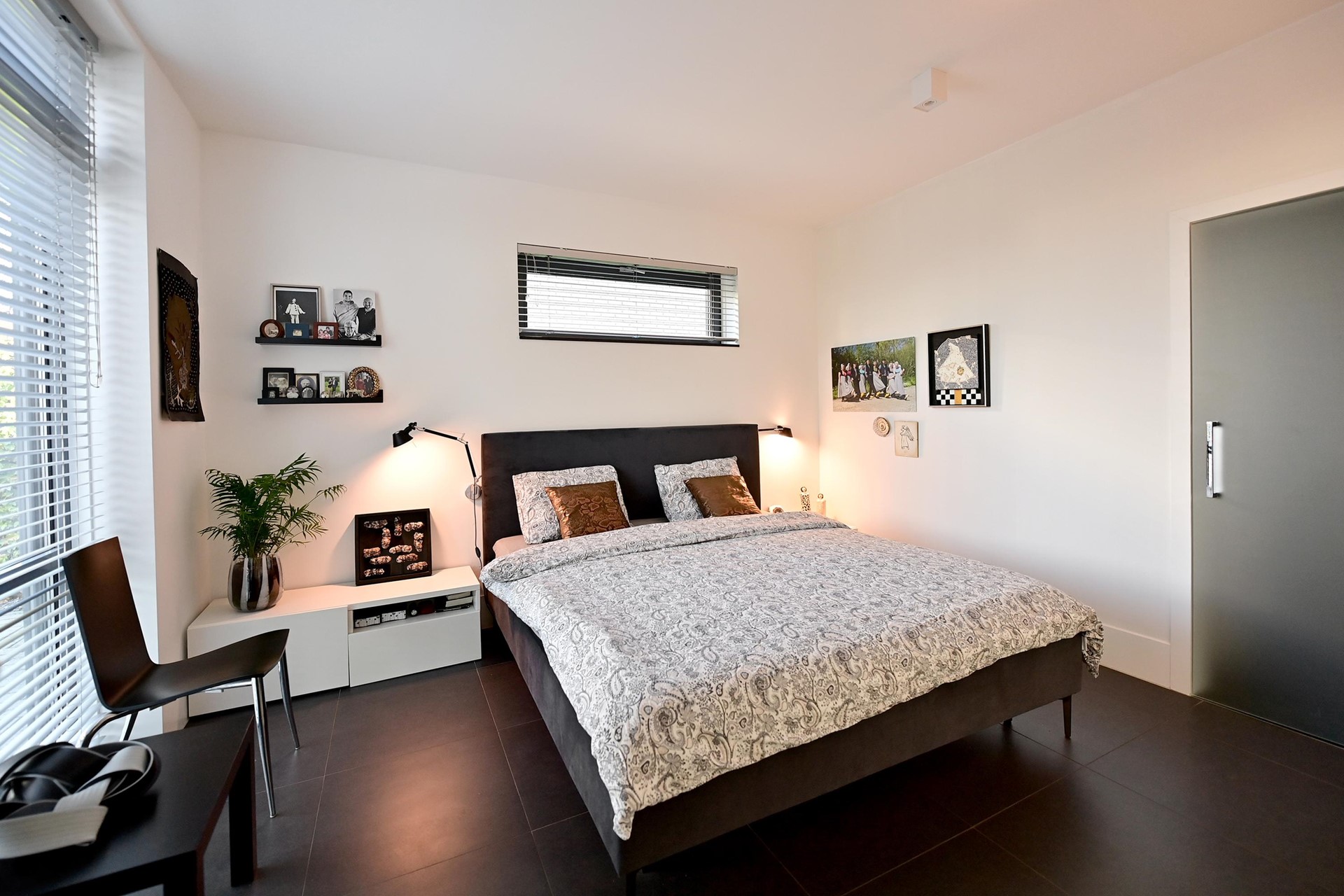De verdieping heeft een royale overloop met toilet en bergkast met de cv-ketelopstelling. De master bedroom is voorzien van een vaste kastenwand. Tweede slaapkamer en royale moderne 2e badkamer met inloopdouche, wastafelmeubel en design radiator.