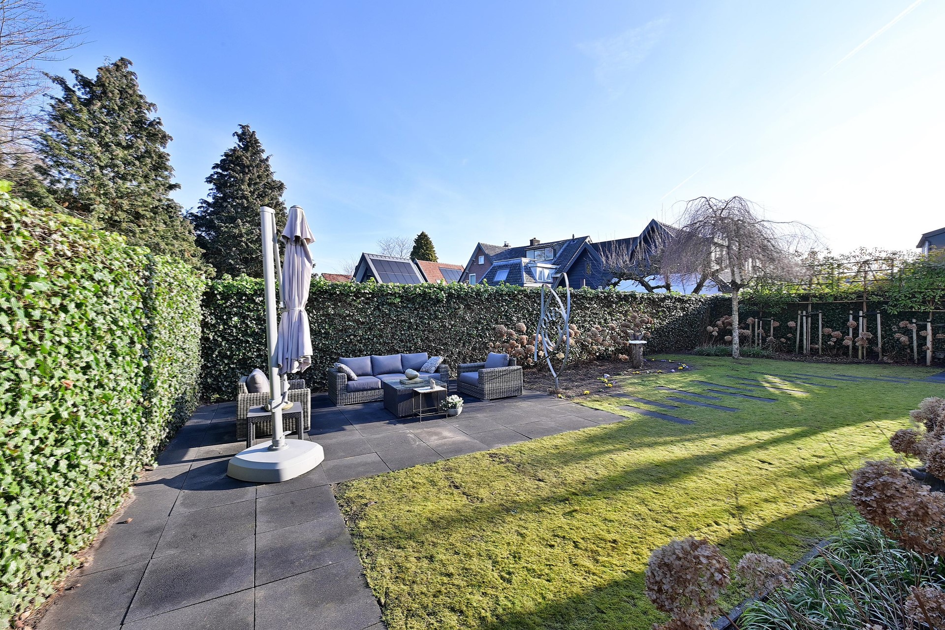 De villa is gelegen op een perceel van 441m2 eigen grond. De voortuin biedt gelegenheid om 2 auto's op eigen terrein te parkeren. Via de linkerzijde van de villa bereikt u de inpandige berging. De achtertuin is modern aangelegd en biedt door de hederahagen en leilindes veel privacy. De tuin is geheel in stijl van het huis aangelegd, strak en modern.
