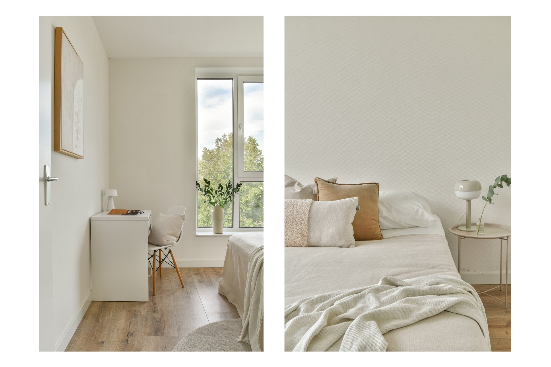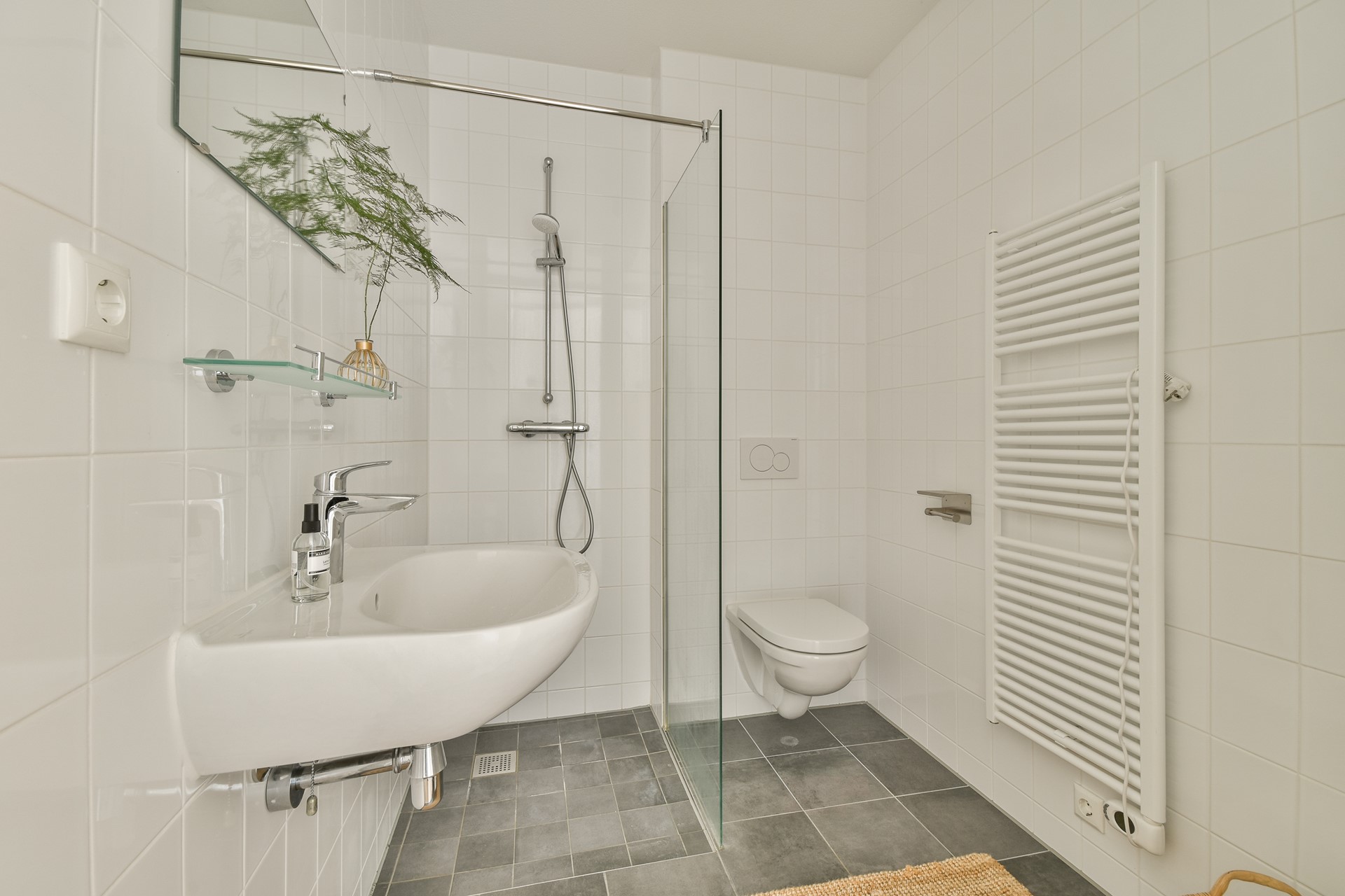 Het appartement heeft twee slaapkamers, waarvan de hoofdslaapkamer aan de rustige zijde ligt. De tweede kamer is ideaal als werkkamer of logeerkamer. De badkamer is modern uitgevoerd met inloopdouche, wastafelmeubel en wasmachineaansluiting. Er is een separaat toilet in de hal.